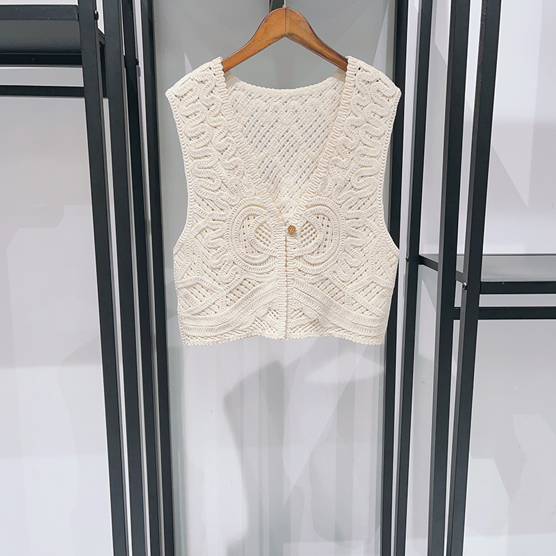 프랑스 스타일 틈새 2025 봄과 여름 빈티지 올 매치 원피스 버클 크로 셰 티드 할로우 민소매 V-neck 여자 Ware Vacator 25239스토어 가기