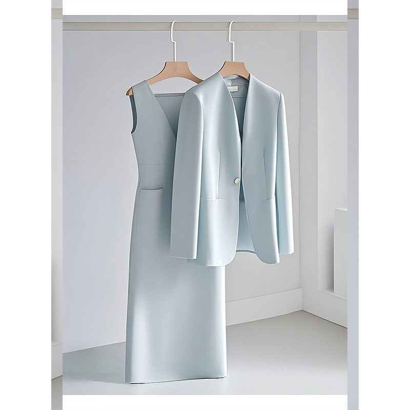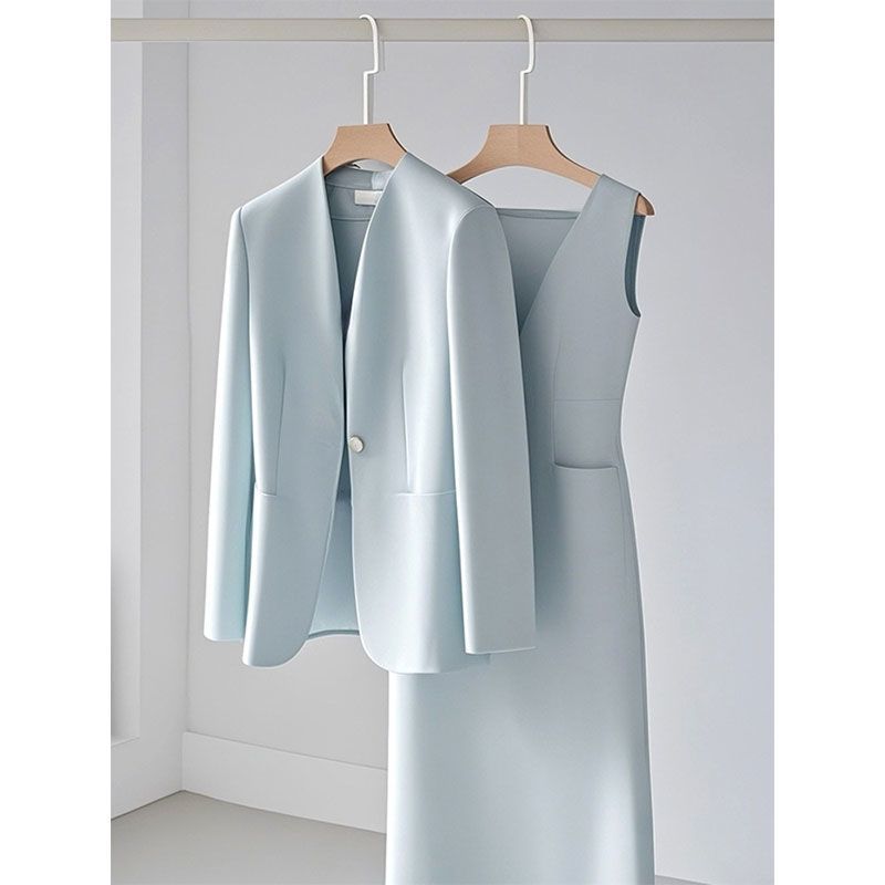 2025 패션 리치 레이디 서양식 고귀한 하이 엔드 블루 코트 원피스 투피스 세트 여성 초가을스토어 가기