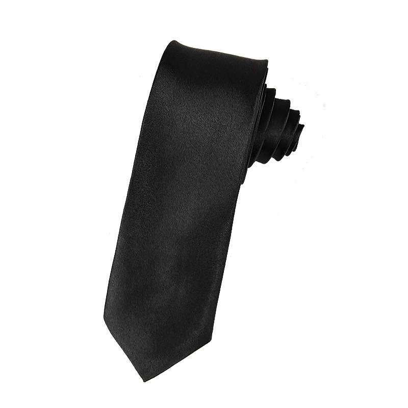 남성과 여성의 검정색 5CM 새틴 넥타이 단색 단색 좁은 비즈니스 한국어 버전 정장 광택 Shaoxing Shengzhou
