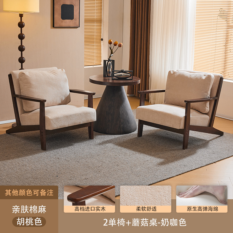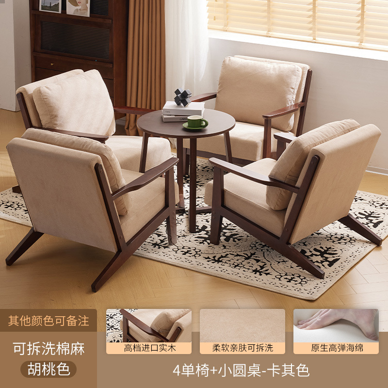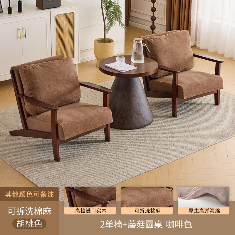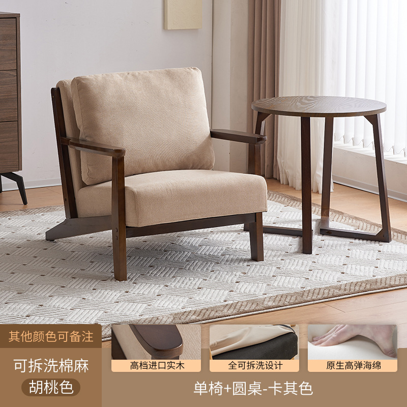 1인용 소파 거실 호두나무 싱글 의자 홈 레저 의자 원목 발코니 게으른 복고풍 협상 테이블과 의자 그룹 s^스토어 가기