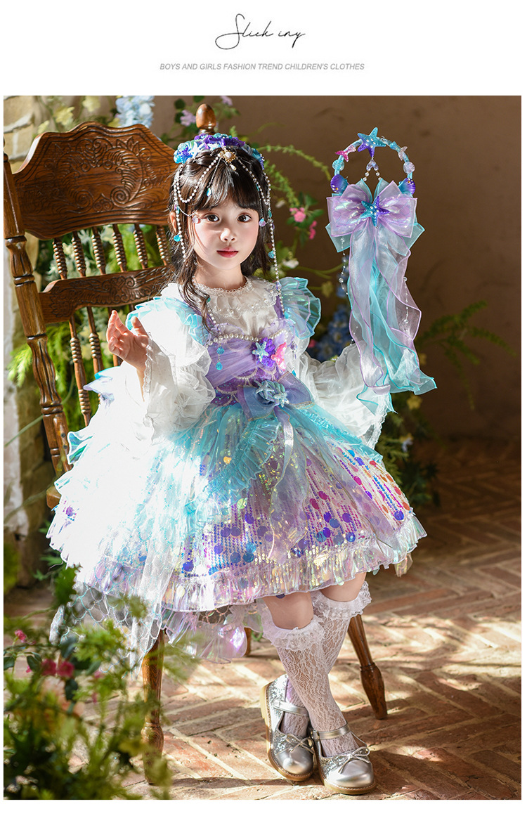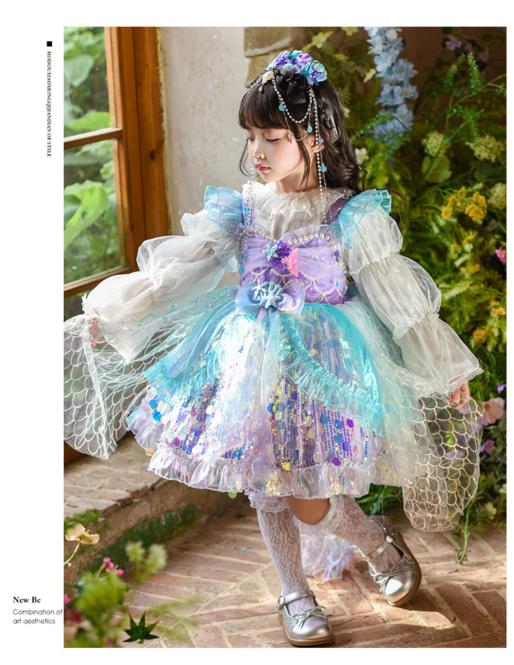 여자 로리타 공주 드레스 25 가을 새로운 어린이 생일 드레스 투투 스커트 인어 공연 스커트스토어 가기