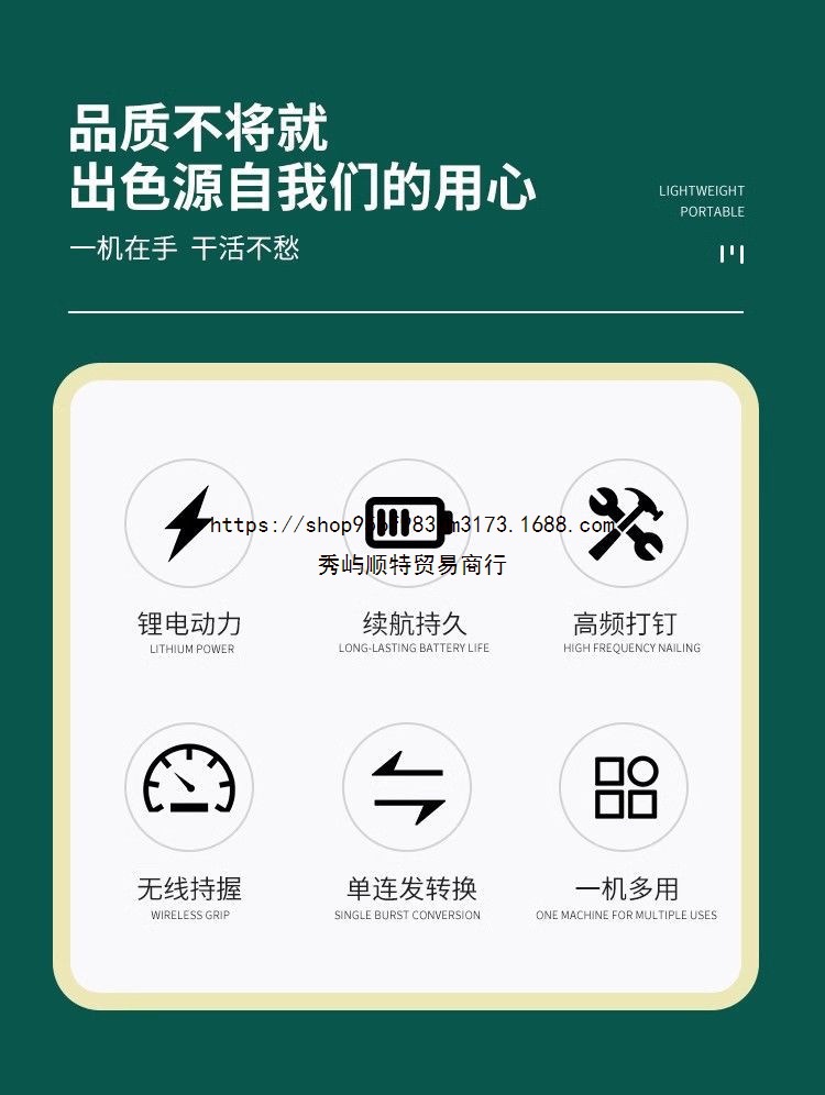 Qimo KM4050 리튬 전기 네일 건 스트레이트 네일 코드 네일 이중 목적 네일 건 목공 유지 보수 편리한 충전 스트레이트 네일