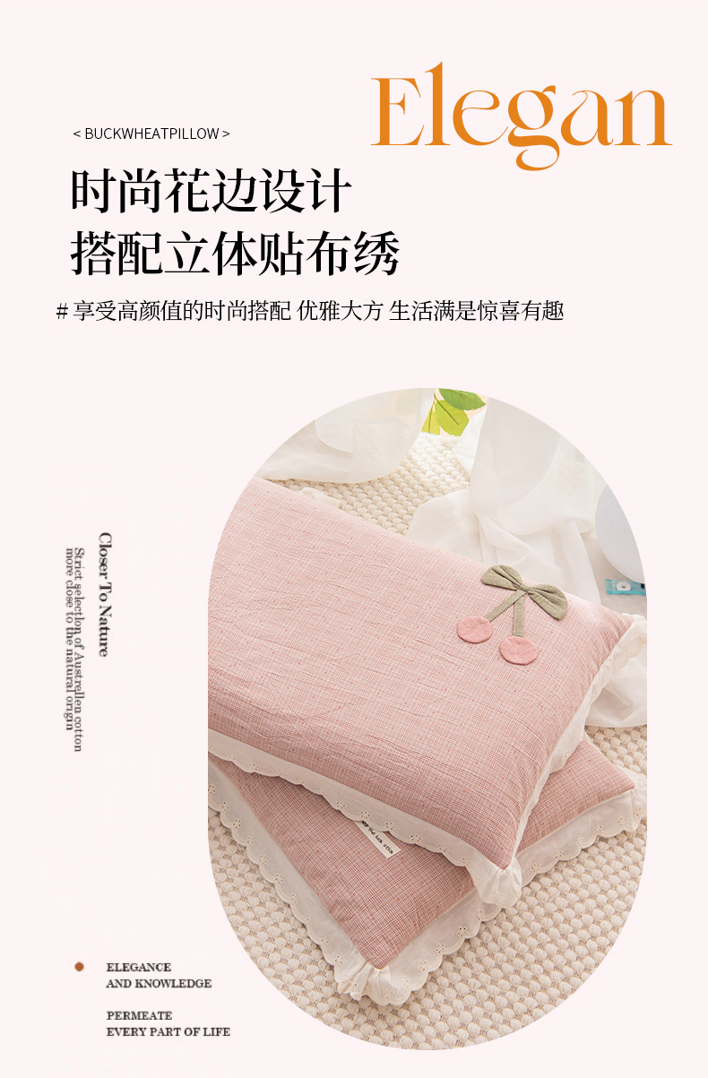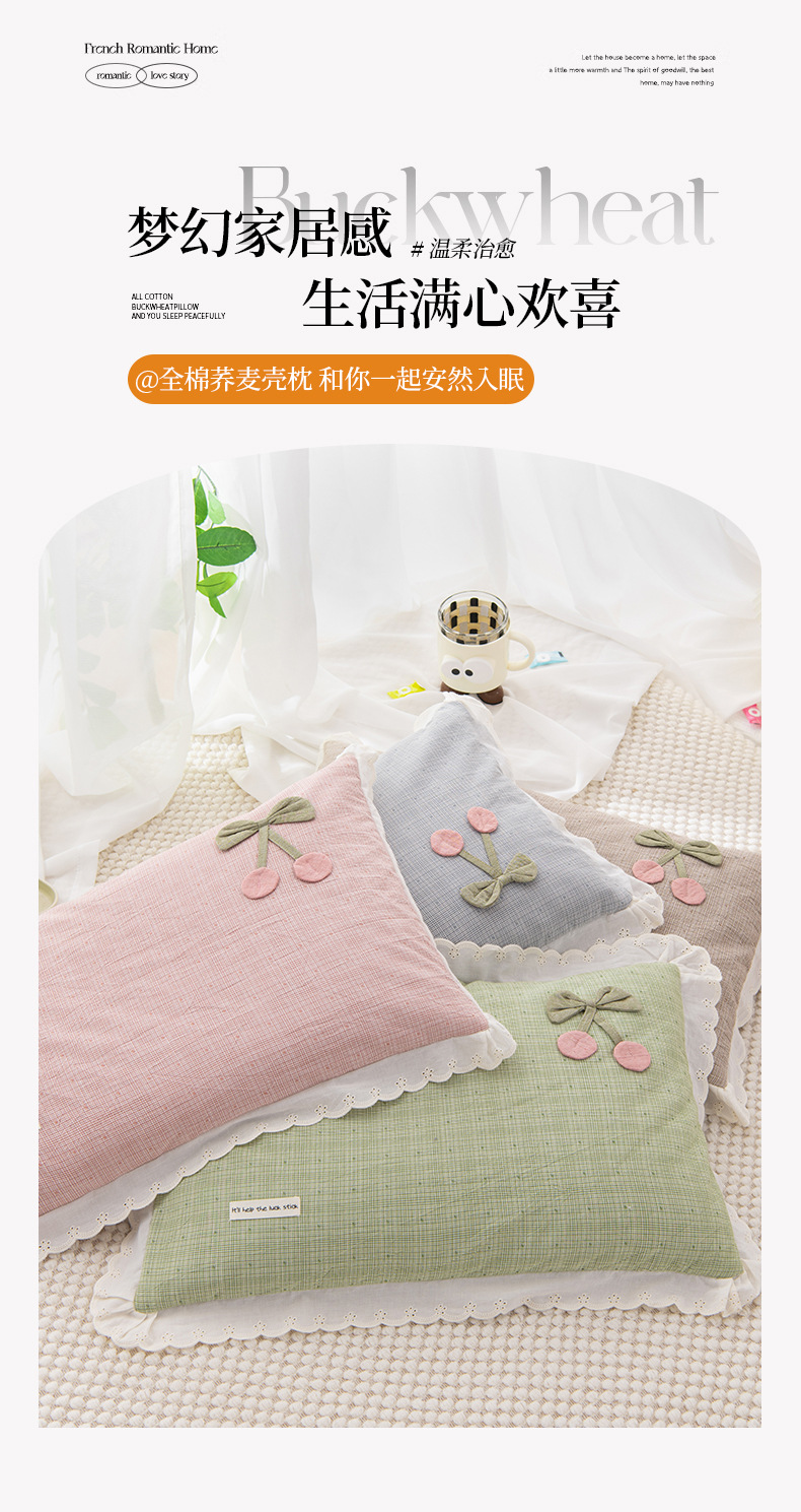 베갯잇이 포함된 메밀껍질 베개, 면 100% 경추 보호 수면 베개 코어, 어린이 가정 학생 기숙사, 풀 헤드 한 쌍