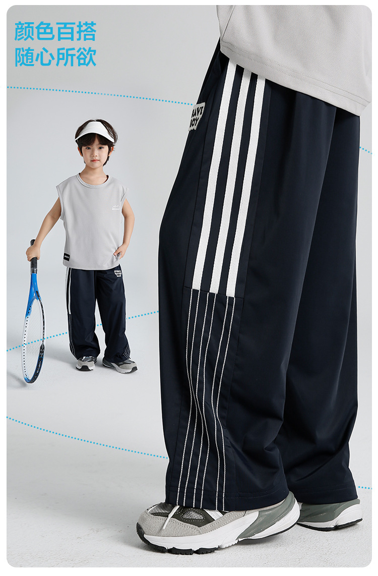 하이마 홈 2025 여름 새 소년 리본 줄무늬 태양 보호 캐주얼 바지 경량 넓은 다리 긴 바지 여름 착용스토어 가기