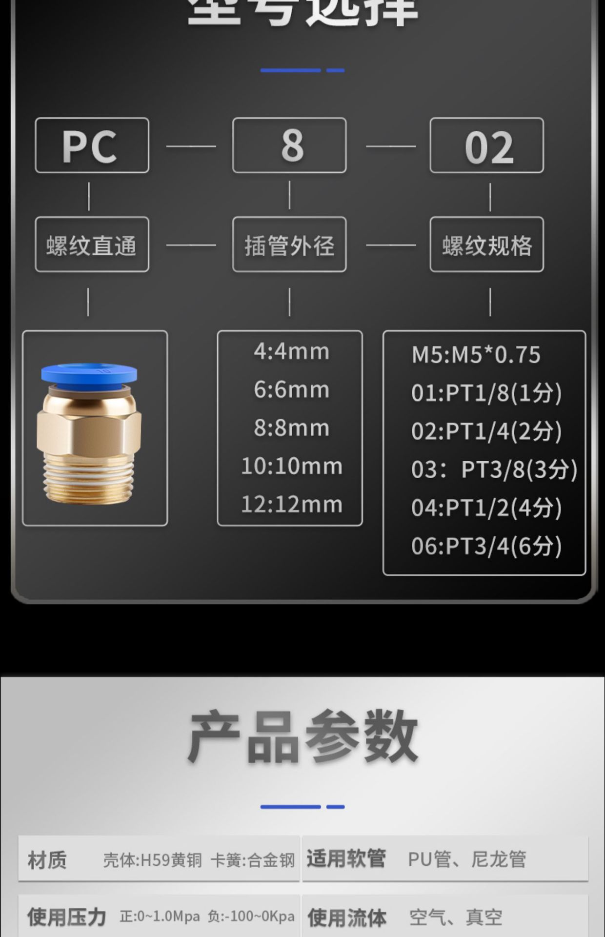 공기 파이프 퀵 커넥터, 공압 부품, PC 메트릭 퀵 플러그, 퀵 커넥터, 스레드 스트레이트 스레드 공기 소스, 구리 액세서리스토어 가기