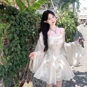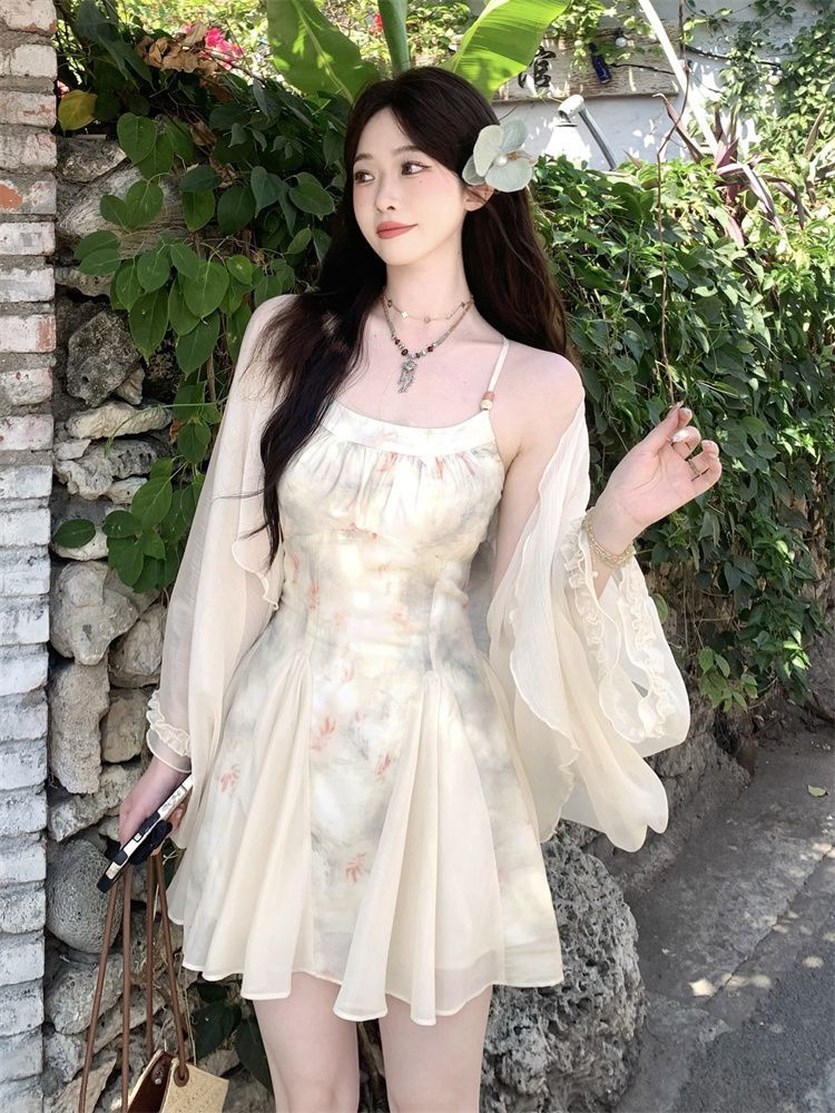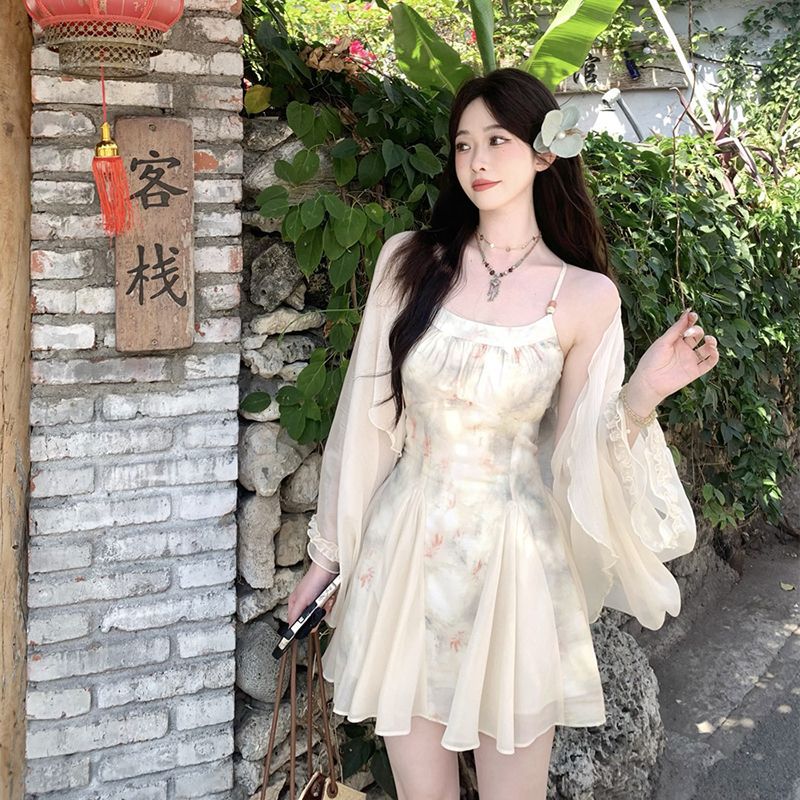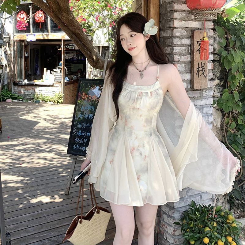 새로운 중국 스타일 국가 스타일 카디건 슬립 스커트 세트 여름 새로운 달콤하고 매운 틈새 귀여운 꽃 원피스 투피스 세트스토어 가기