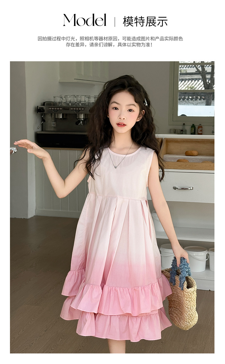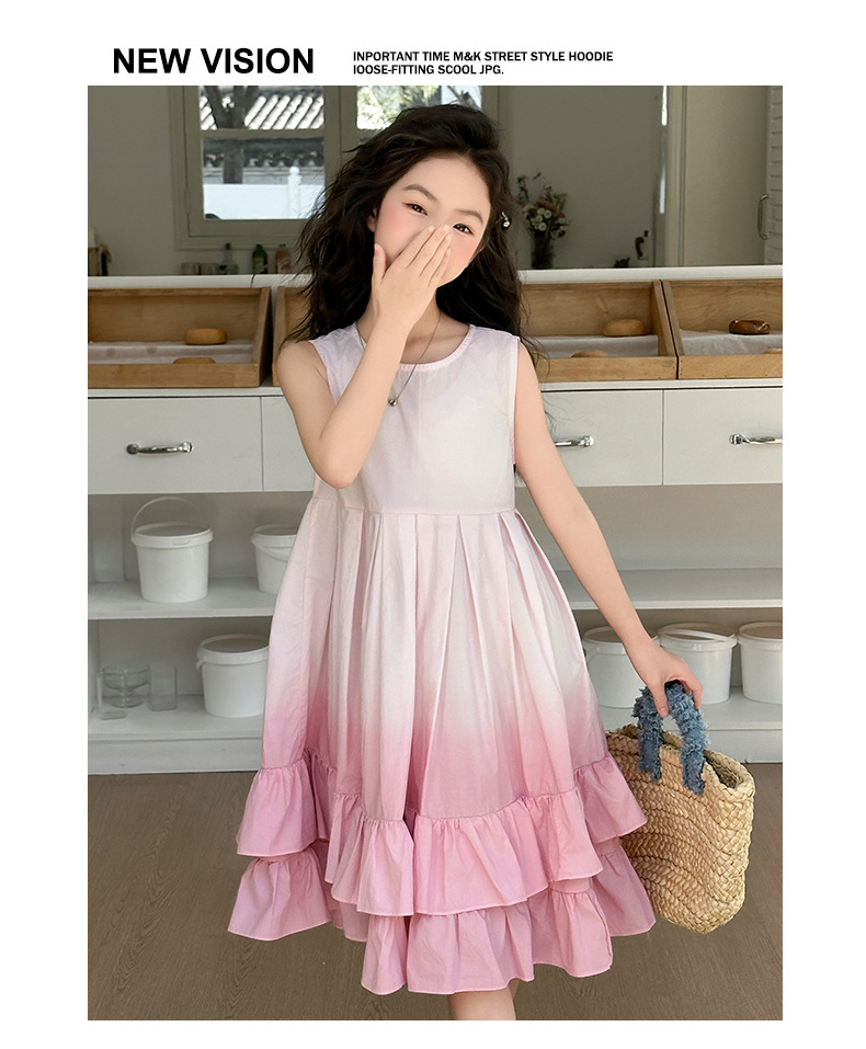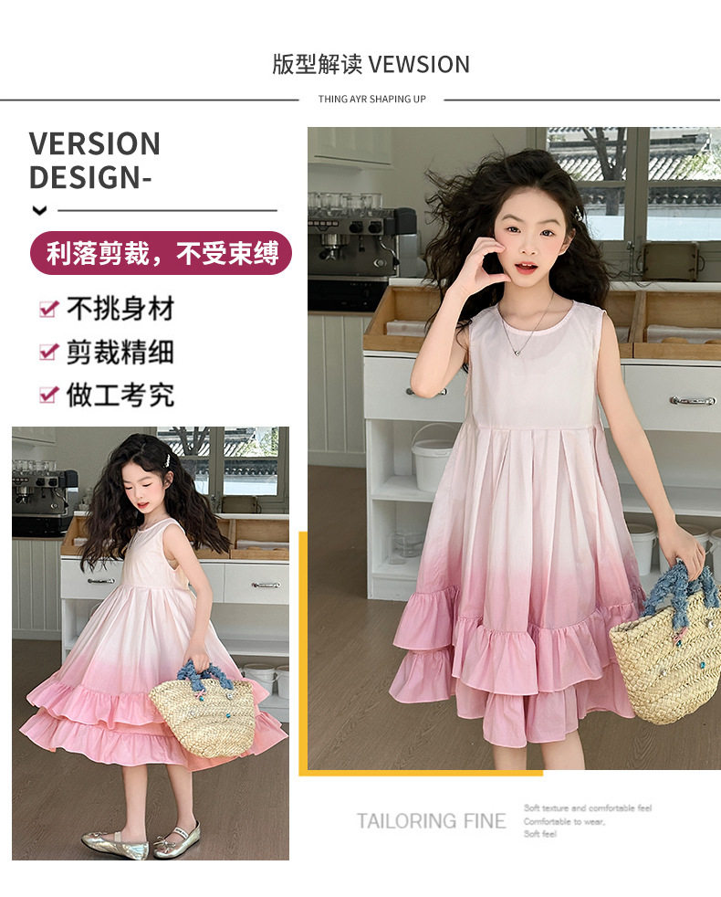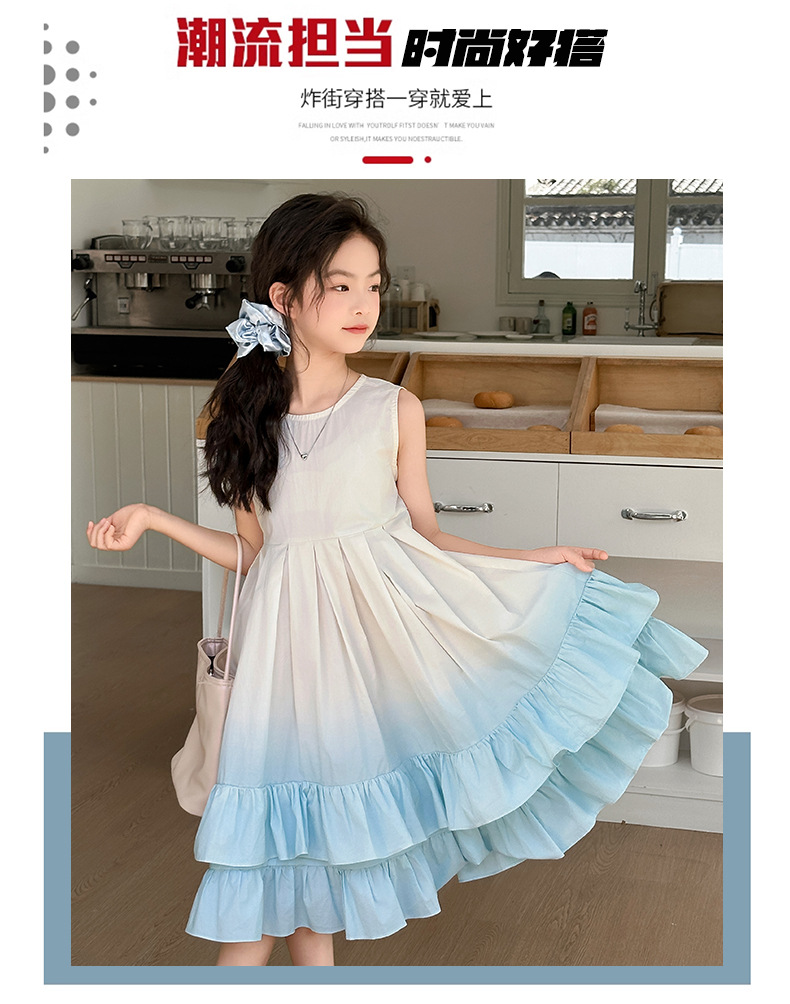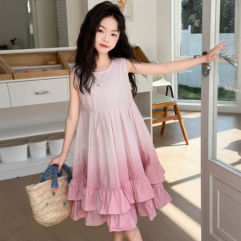 소녀 여름 새 도착 원피스 어린이 유행 그라디언트 조끼 원피스 소녀 한국식 비치 휴가 원피스