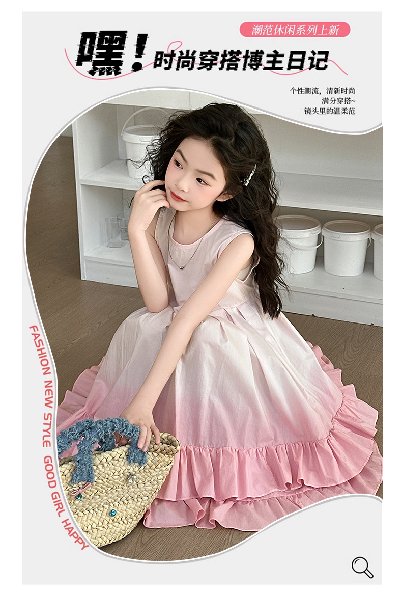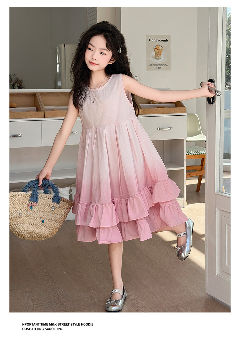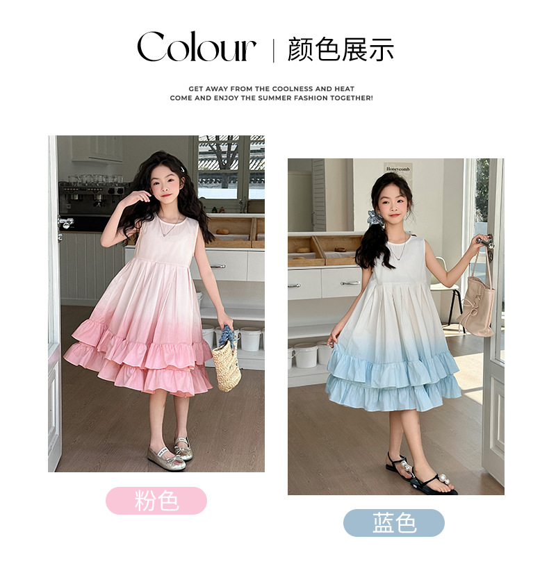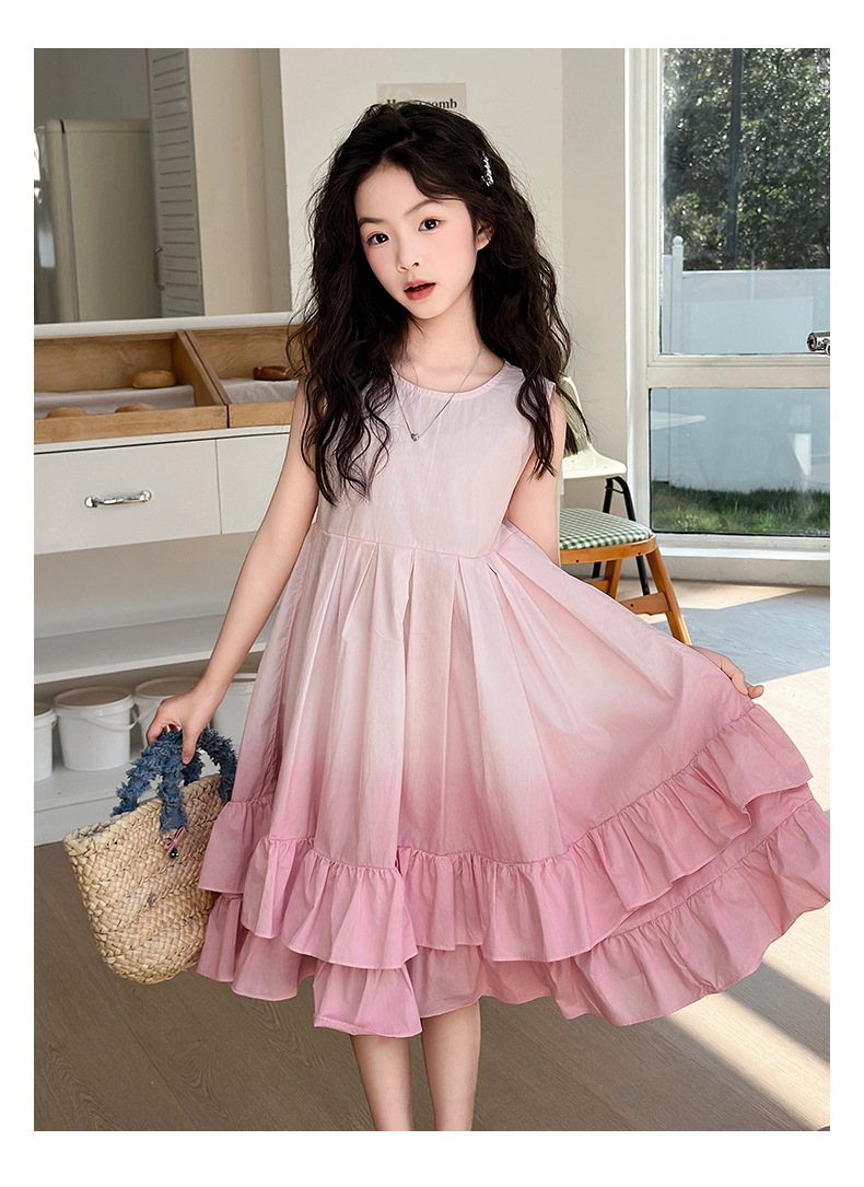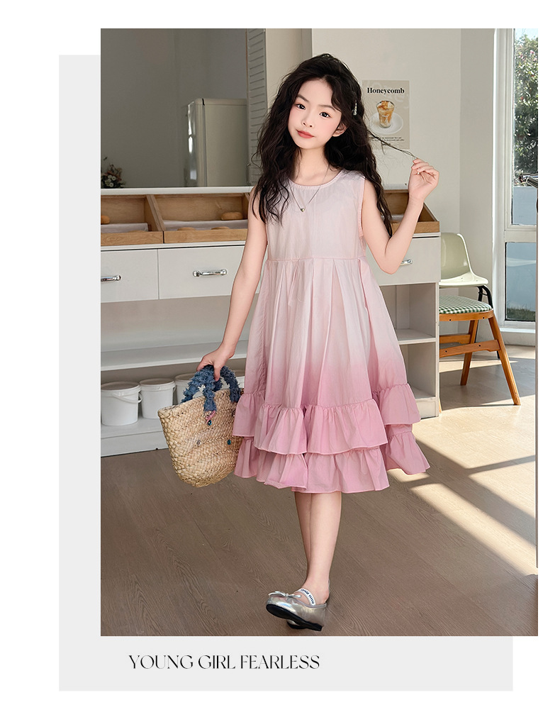 소녀 여름 새 도착 원피스 어린이 유행 그라디언트 조끼 원피스 소녀 한국식 비치 휴가 원피스