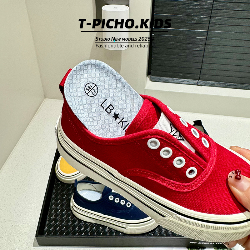 어린이 캔버스 신발 2025 봄과 가을 새로운 여성 발 세트 슬립 온 보드 신발 한국 스타일 소년 소프트 단독 캐주얼 신발