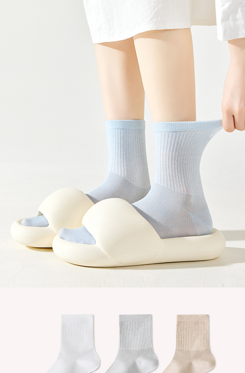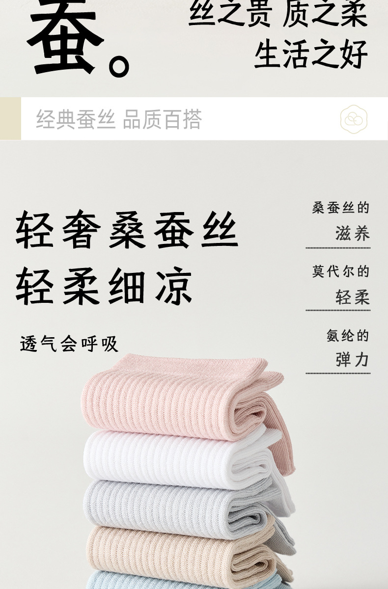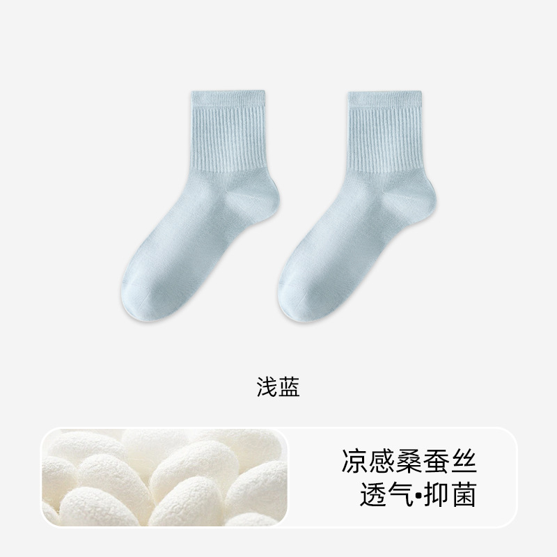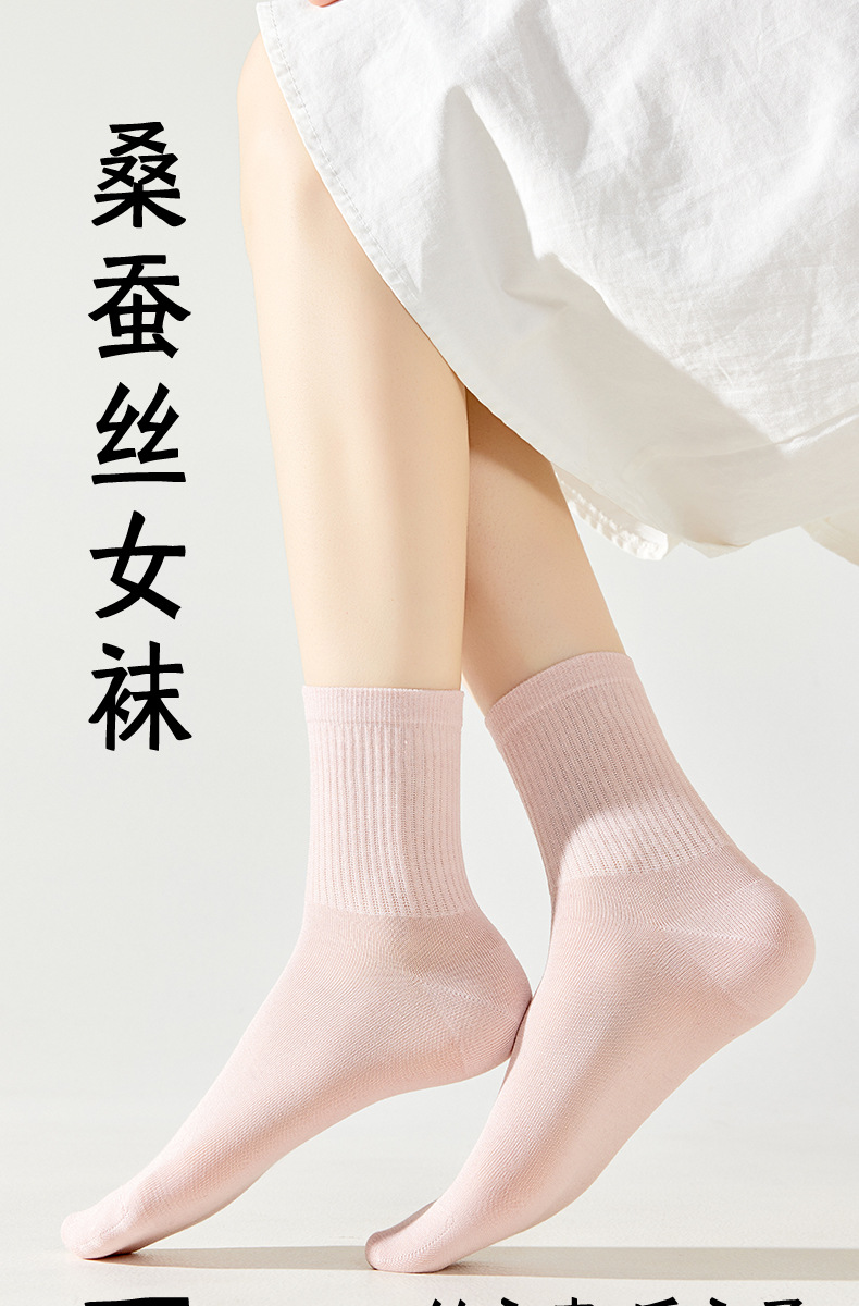 모달 뽕나무 실크 양말 여성의 여름 얇은 중간 튜브 양말 항균 통기성 냄새 방지 발 뼈없는 스태킹 양말