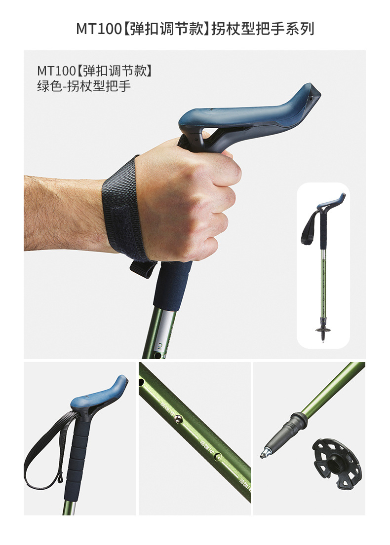 • MT100 - 싱글 [스냅버클 조절형] 그린 - 목발형 손잡이