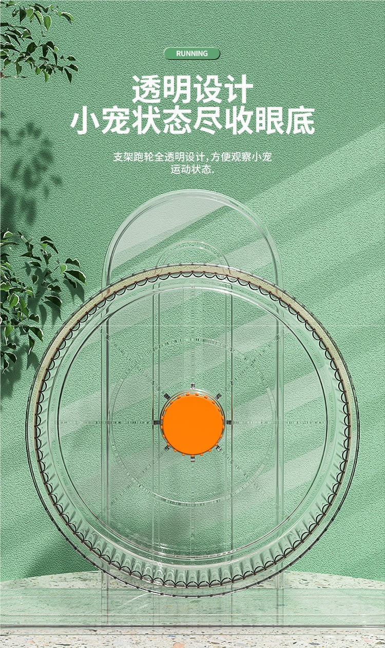 • 21cm 저소음 이중 베어링 주황색 투명 런닝 휠 + 대형 브래킷