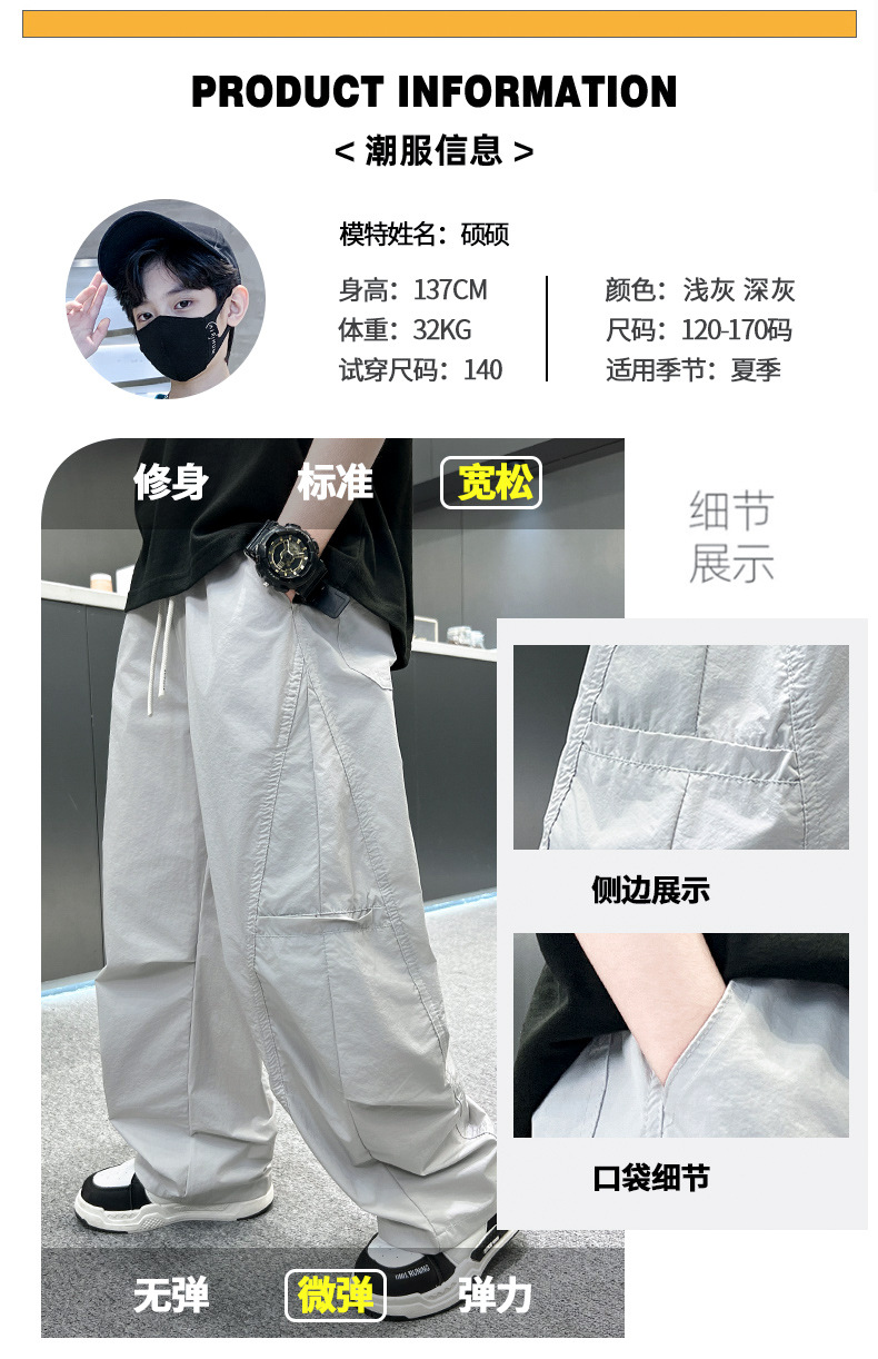 어린이 착용 소년 여름 착용 도구 바지 안티-모기 바지 2025 새로운 여름 미드 빅 소년의 얇은 유행