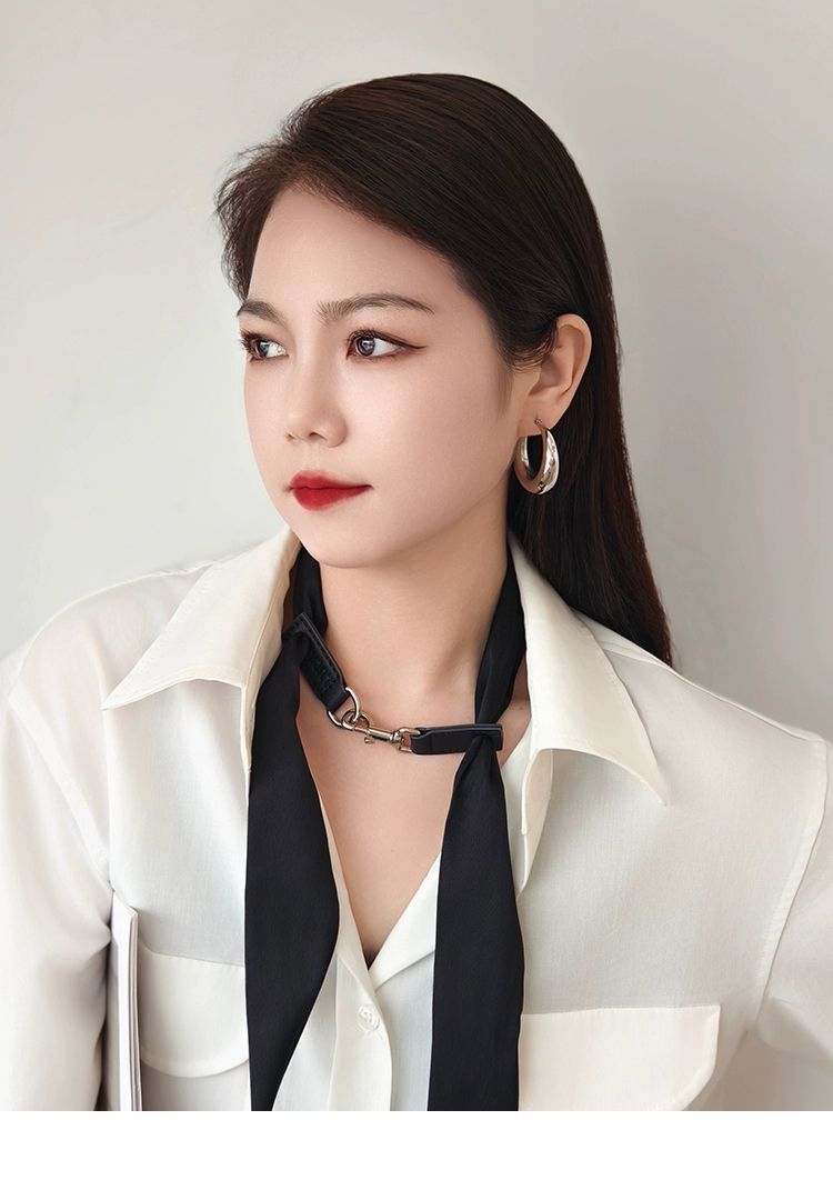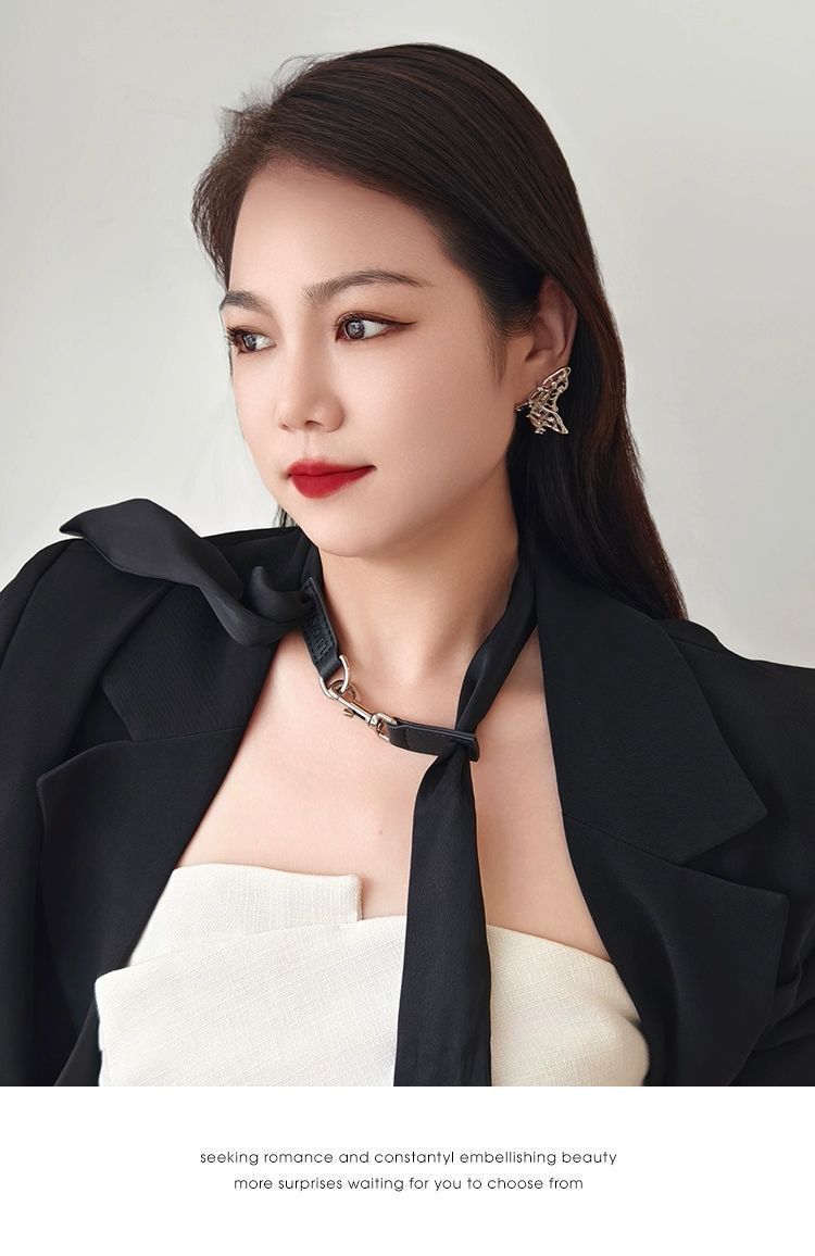 샤오잔과 장링허의 같은 스타일 넥타이, 스카프, 넥밴드, 가죽 버클 넥 장식, 블랙 쇼 리본 액세서리 초커스토어 가기