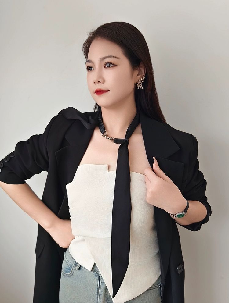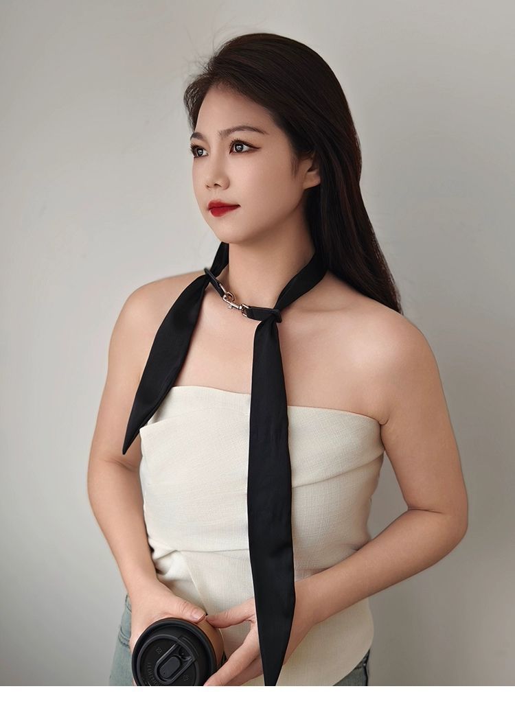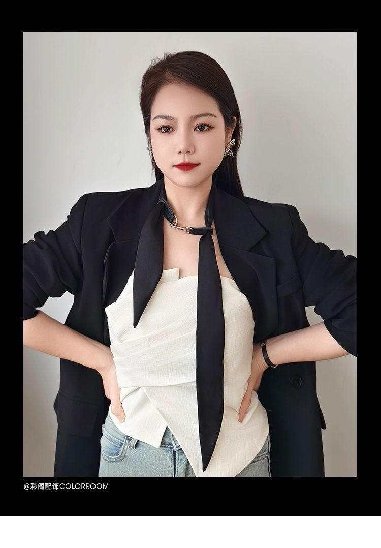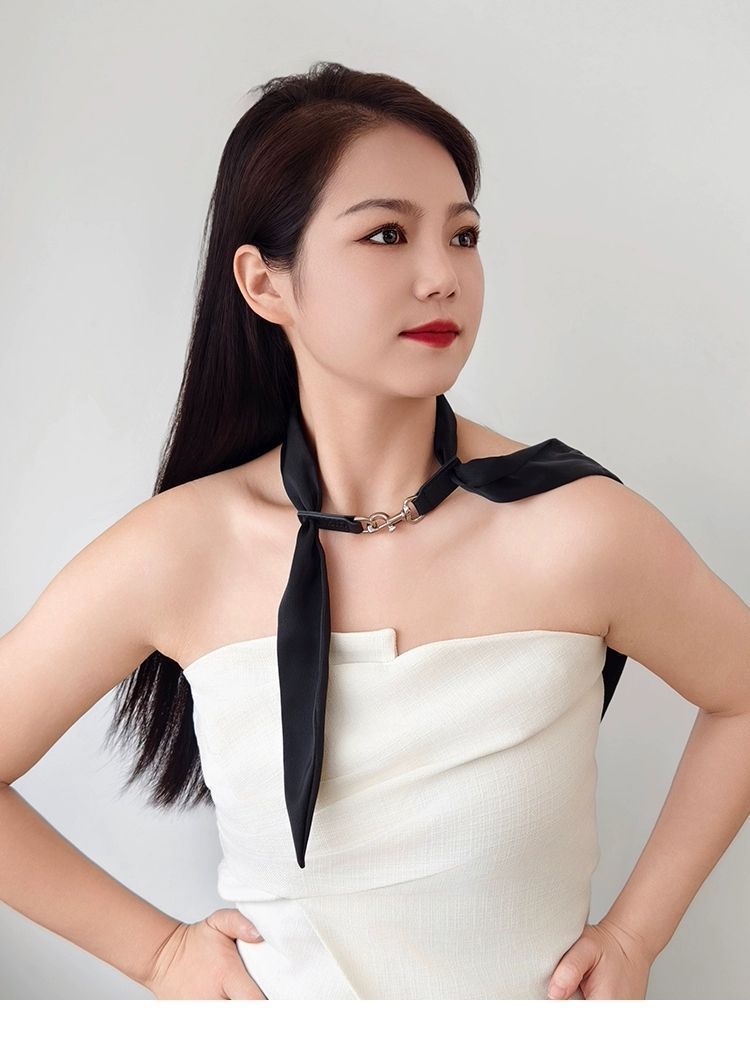 샤오잔과 장링허의 같은 스타일 넥타이, 스카프, 넥밴드, 가죽 버클 넥 장식, 블랙 쇼 리본 액세서리 초커