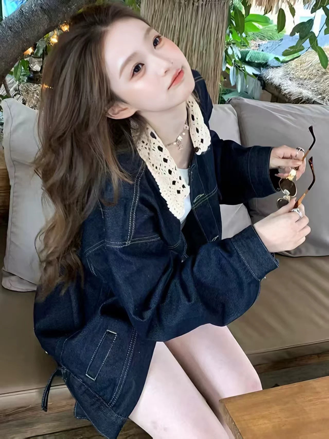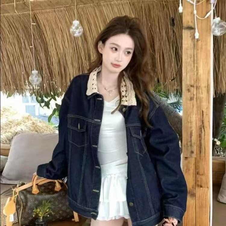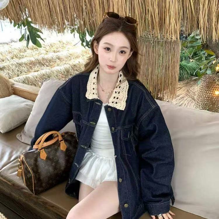 여성용 스플라이스 레이스 디자인 데님 재킷 25 봄, 가을 복고풍 착용 루즈하고 다재다능한 캐주얼 재킷 탑스토어 가기