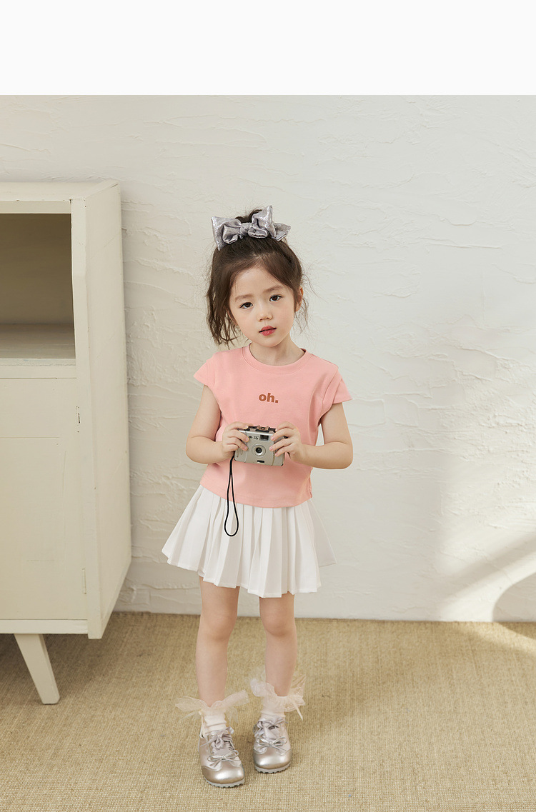 AINI 여자 반팔 티셔츠 올매치 베이비 2025 여름 새 아기 어린이 유행 = 베이스 가짜 투피스 탑스토어 가기
