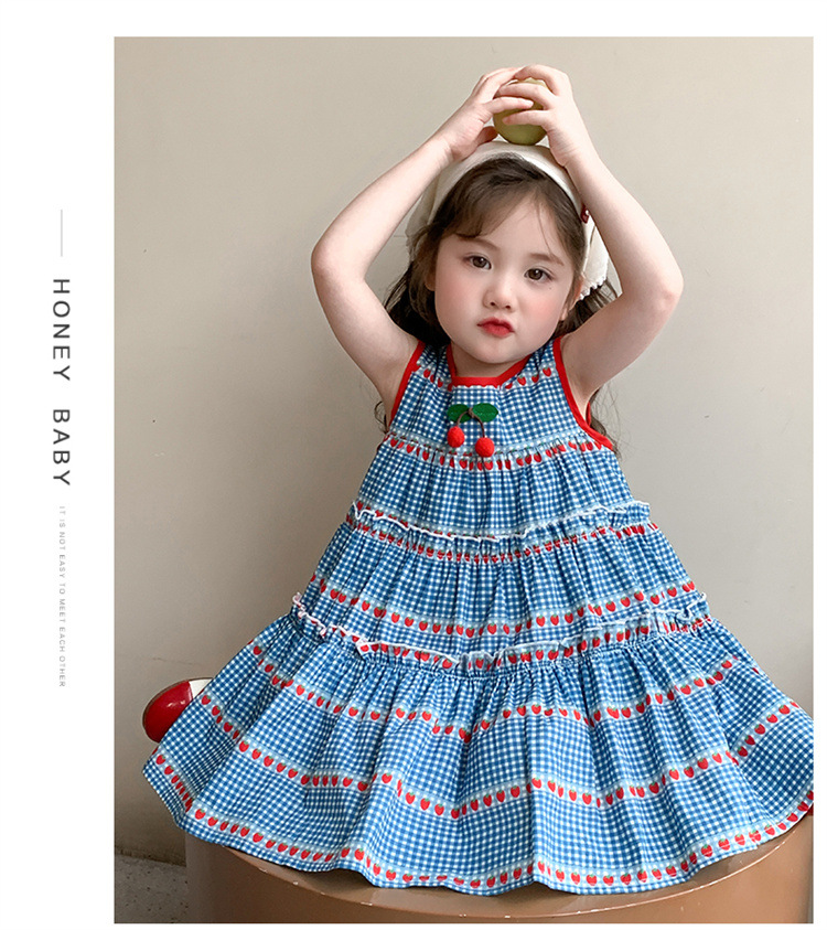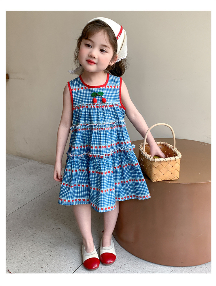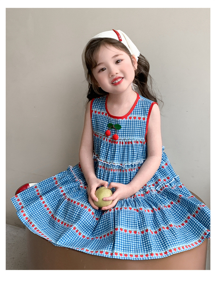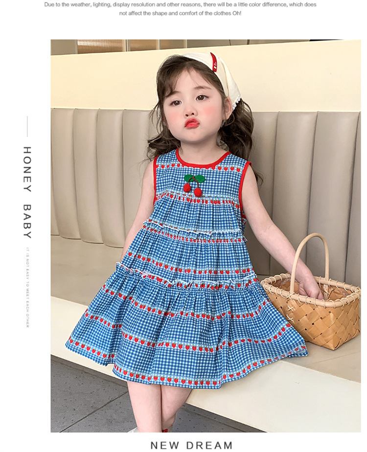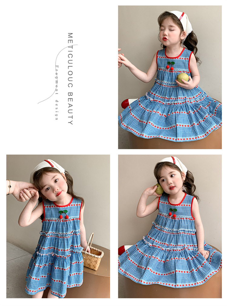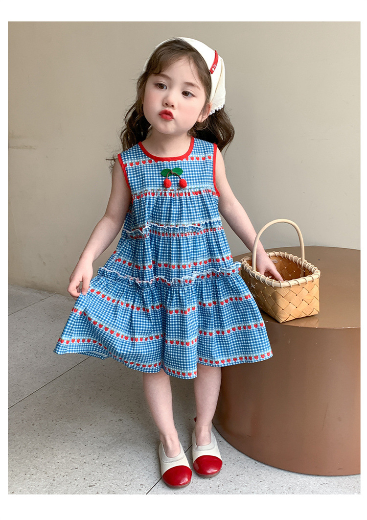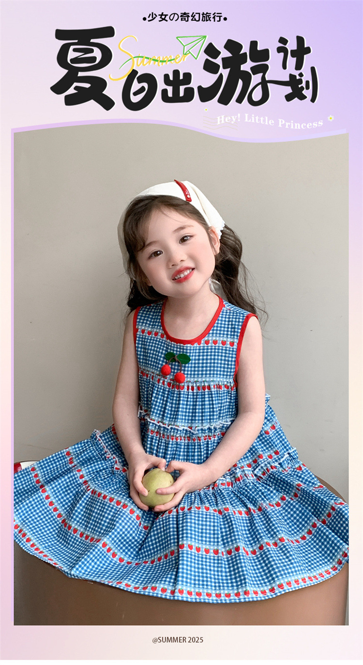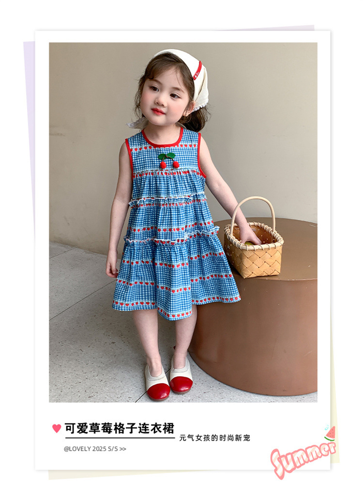 소녀 블루 격자 무늬 원피스 2025 여름 새로운 패션 어린 소녀 세련된 공주 원피스 중소 어린이 여름 원피스스토어 가기