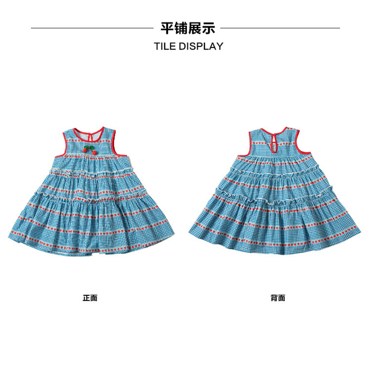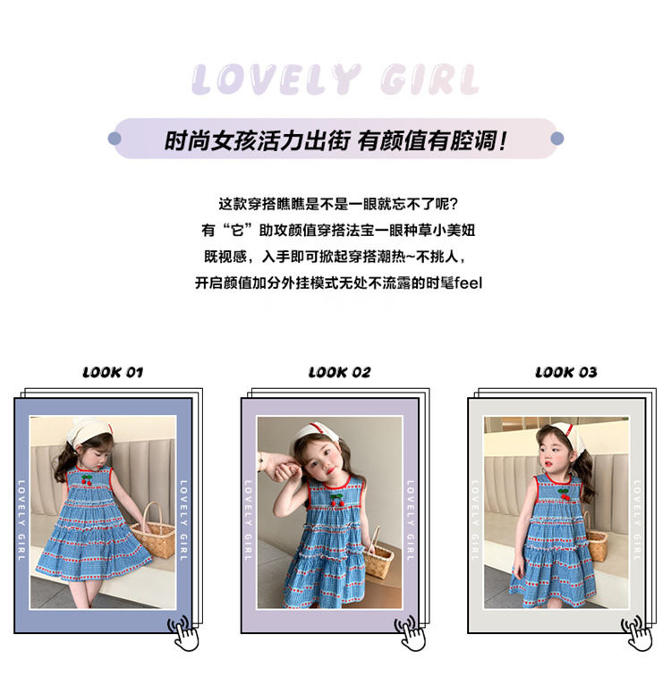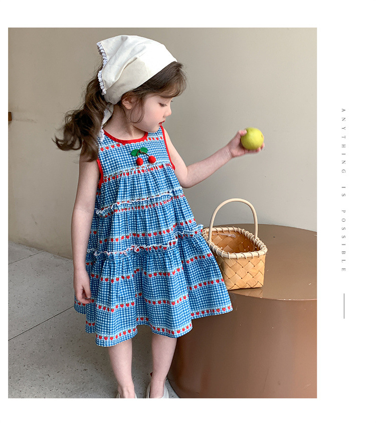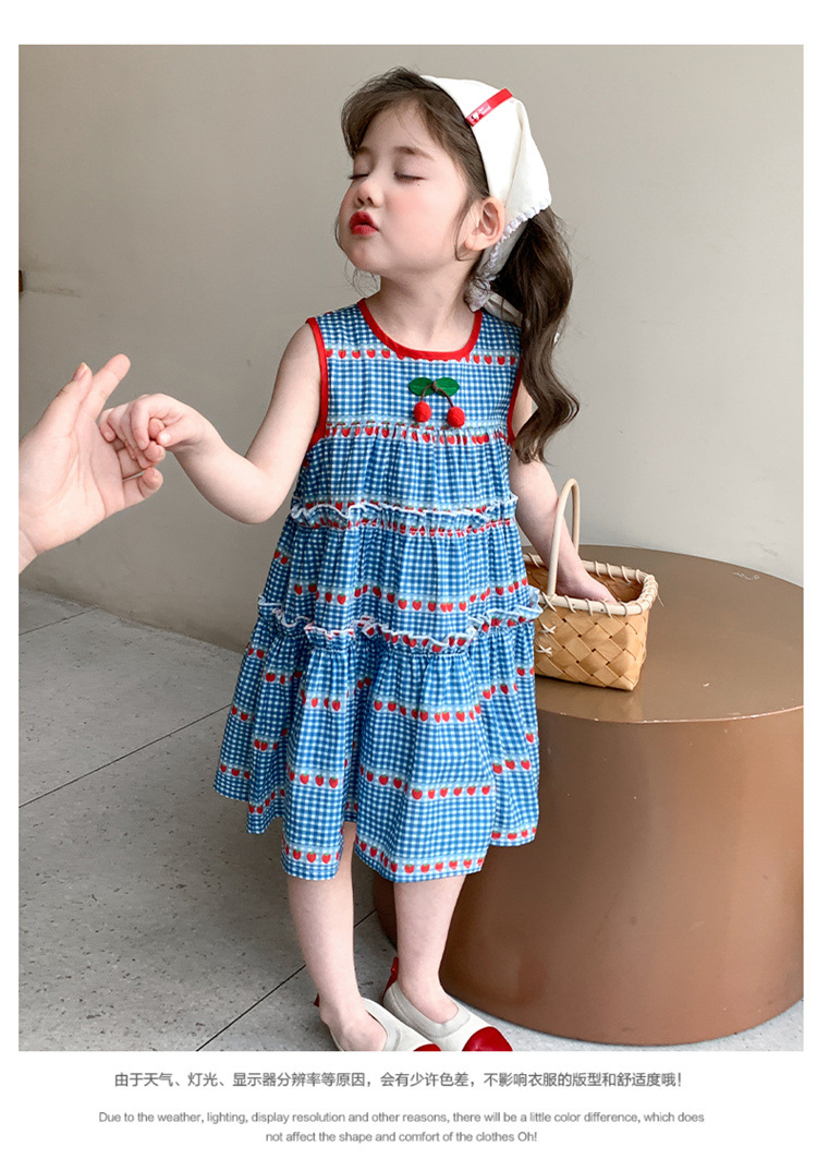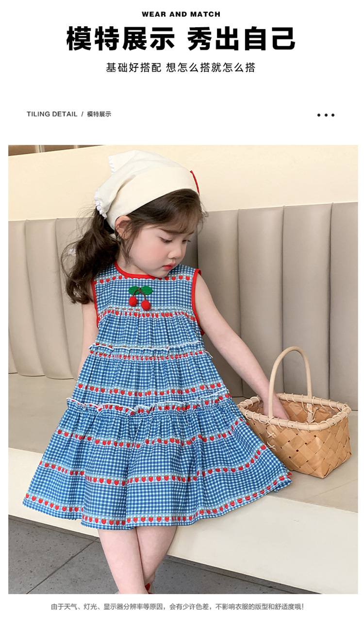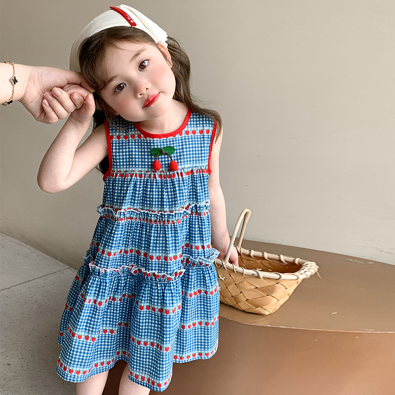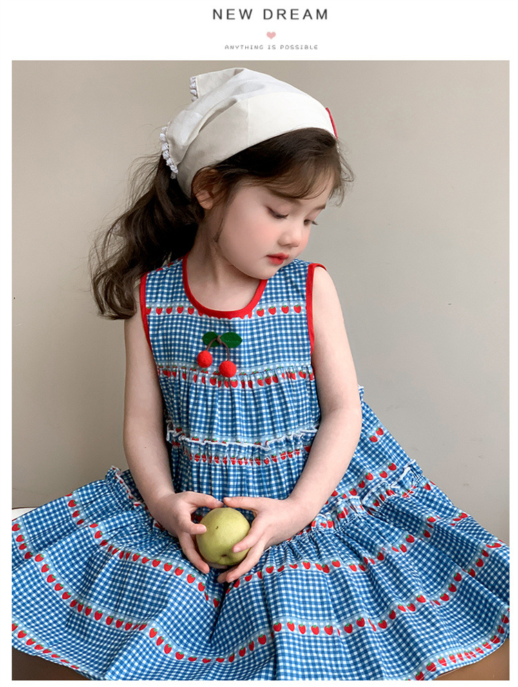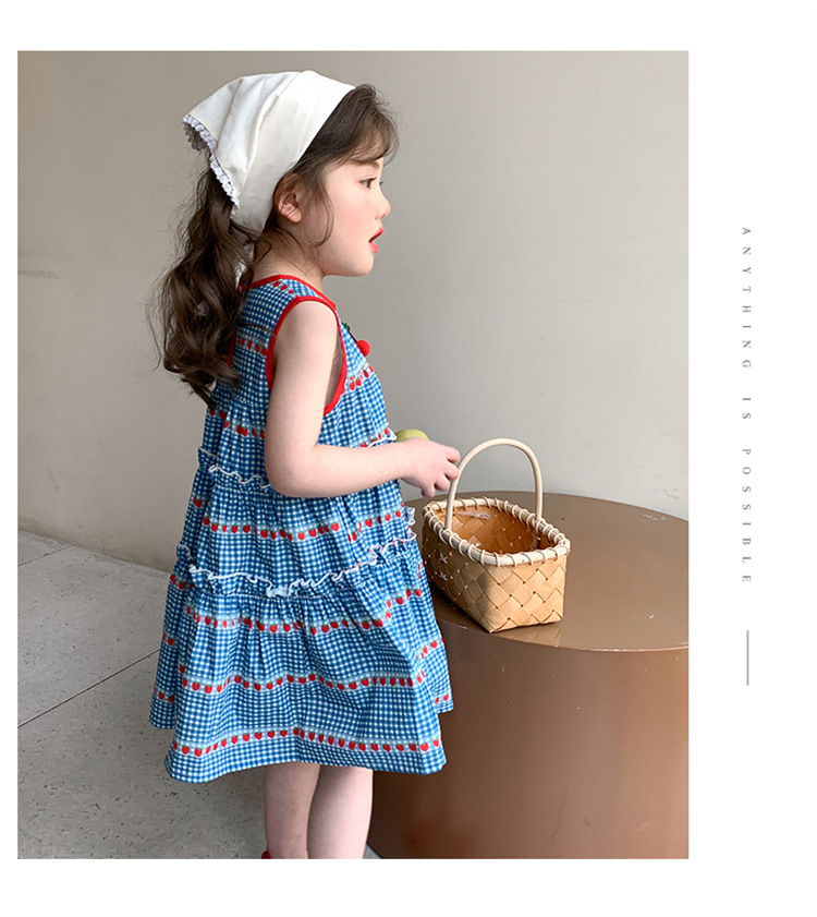 소녀 블루 격자 무늬 원피스 2025 여름 새로운 패션 어린 소녀 세련된 공주 원피스 중소 어린이 여름 원피스스토어 가기