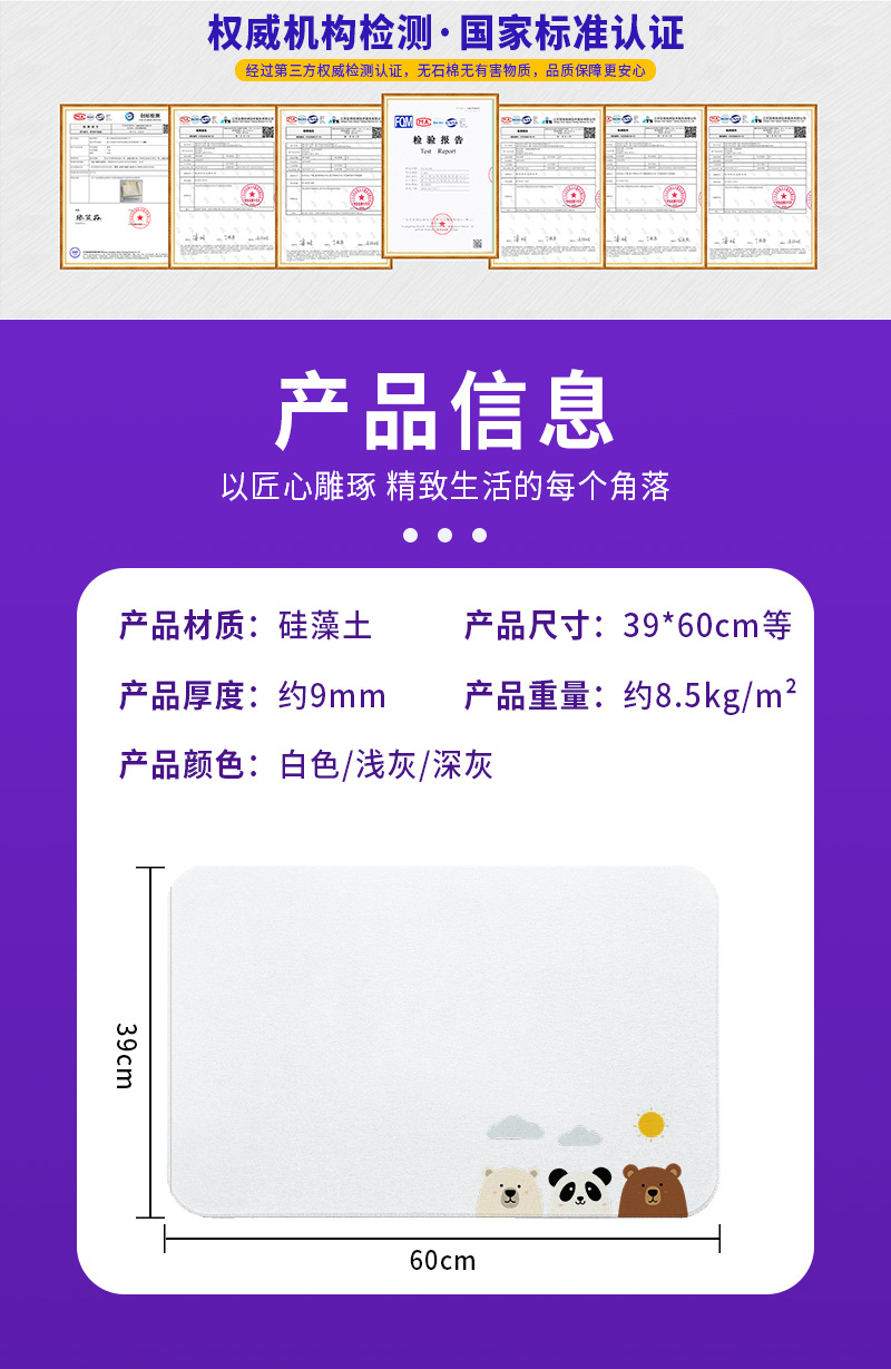 크로스보더 하드 규조토 매트, 빠른 건조 욕실 및 화장실용 흡수성 미끄럼 방지 발매트, 가정용 화장실 방습 욕실 매트스토어 가기