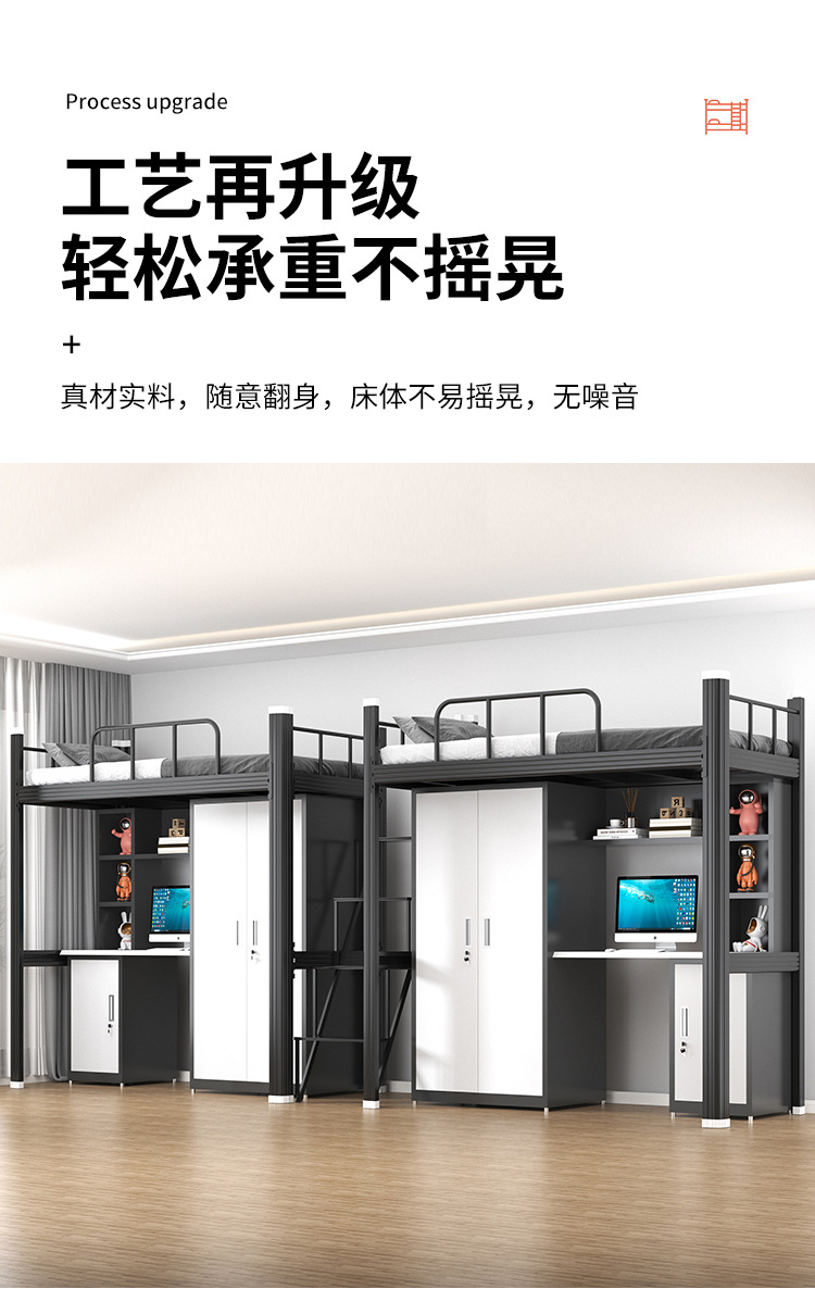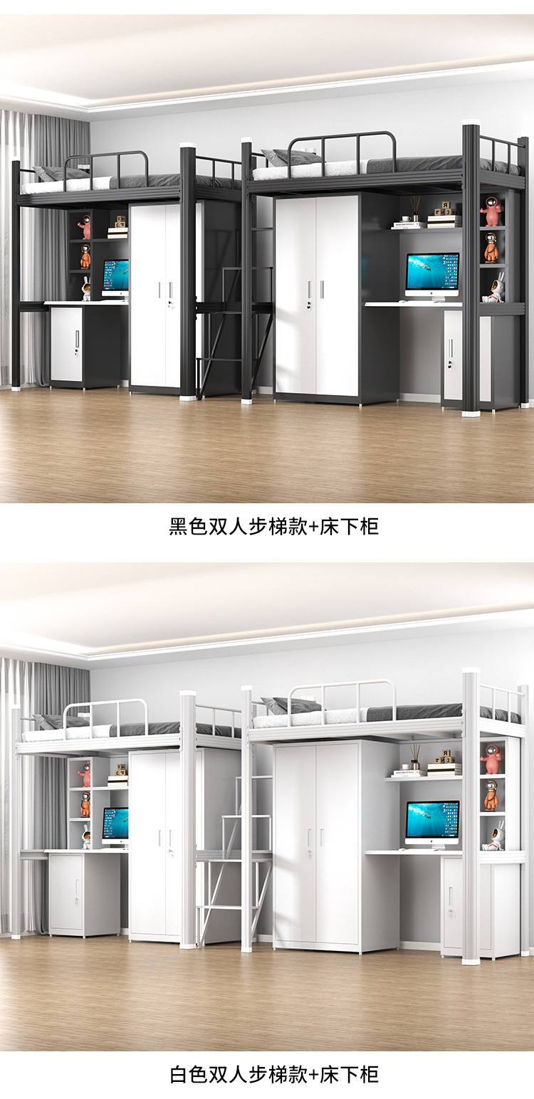 • 검은색 두꺼운 이층 침대와 테이블(강철 옷장 + 탁상 + 책장 + 테이블 밑 캐비닛)