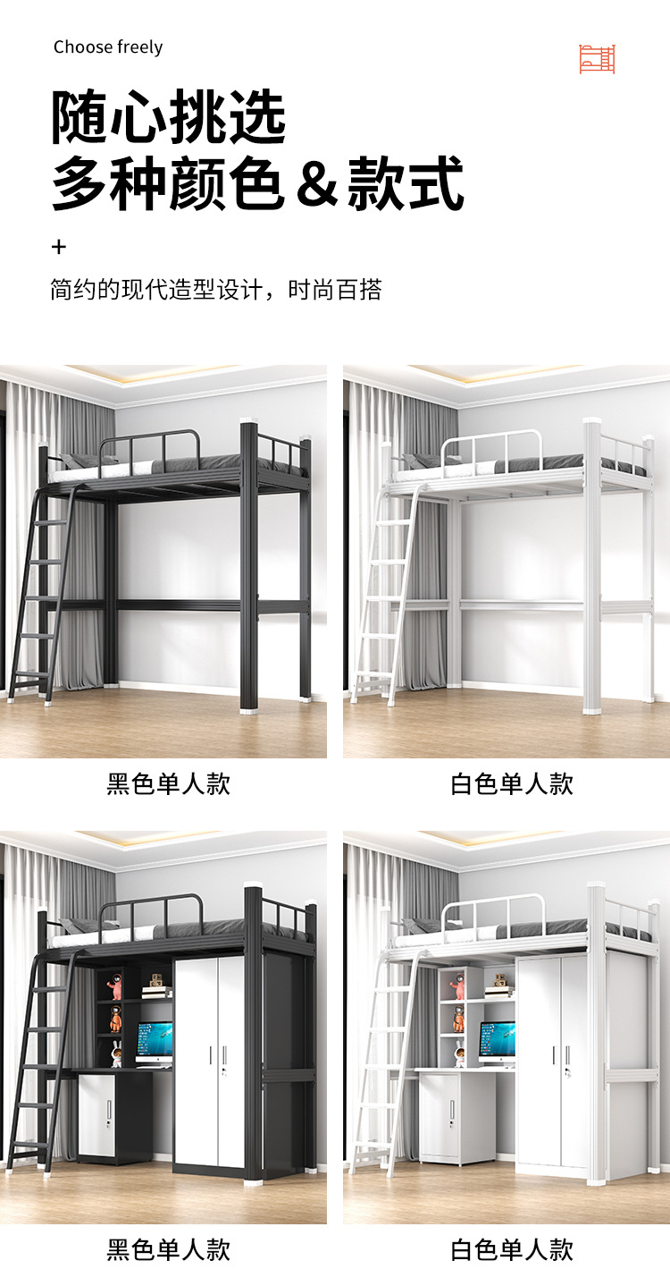 학생 아파트 침대 침대 침대 낮은 테이블 조합 침대 기숙사 침대 직원 철 프레임 침대 작은 아파트 철 이층 침대 등반 사다리