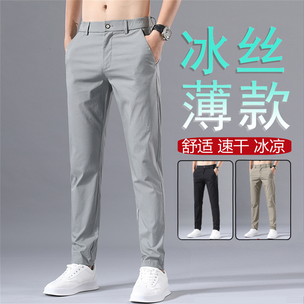 아이스 실크 캐주얼 바지 남성 여름 얇은 바지 자외선 차단 속건성 스트레이트 탄성 작업복 내마모성 작업 바지
