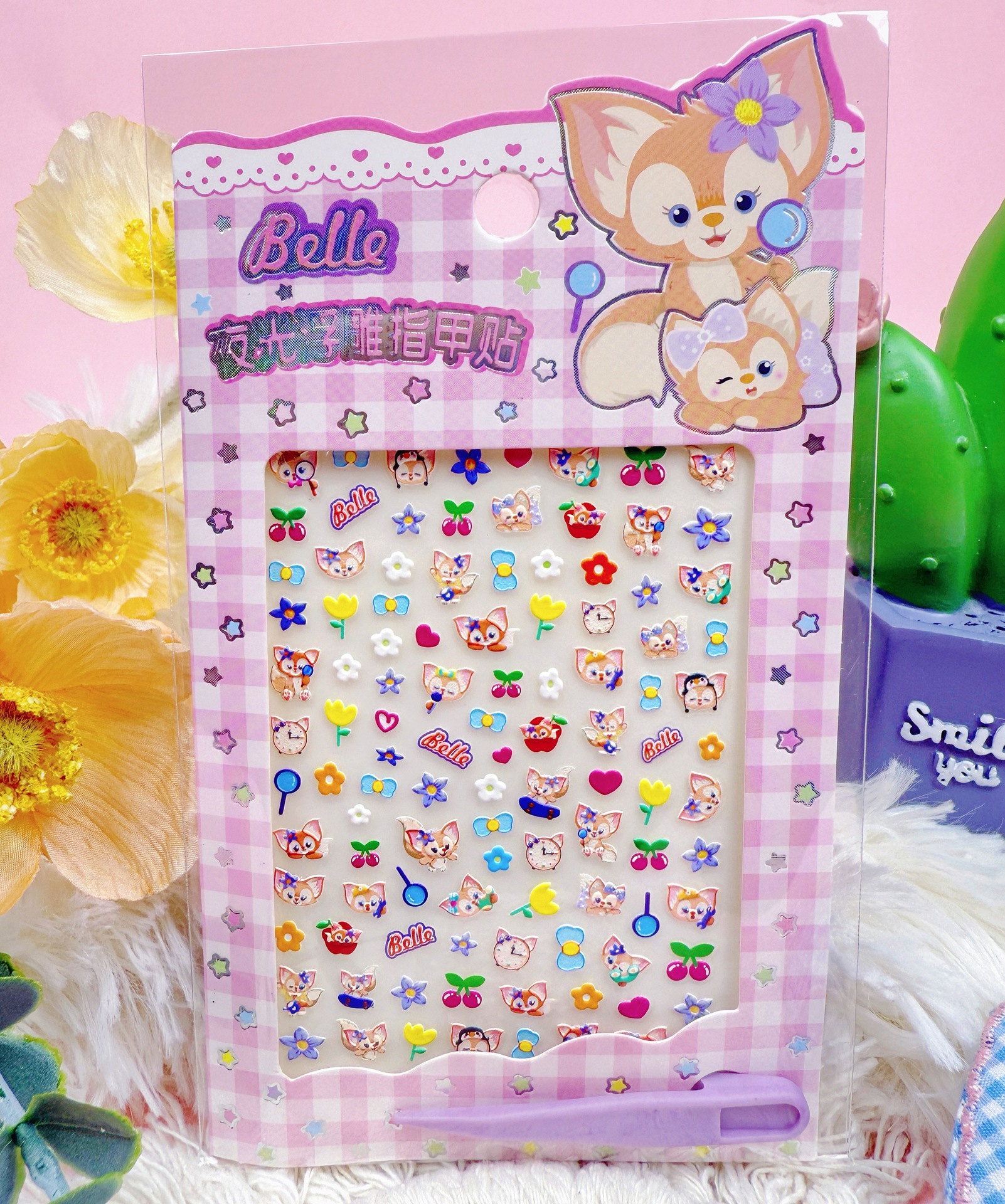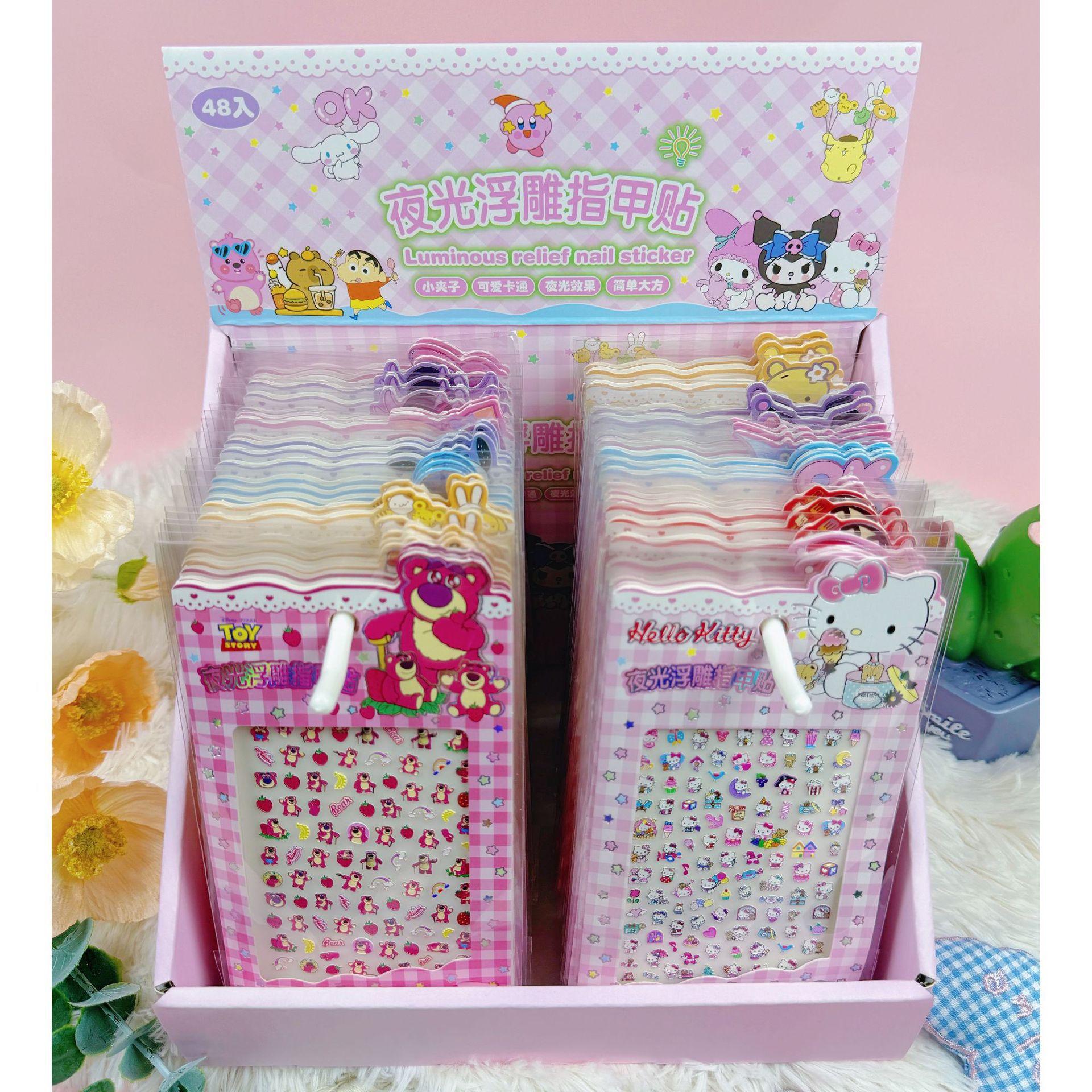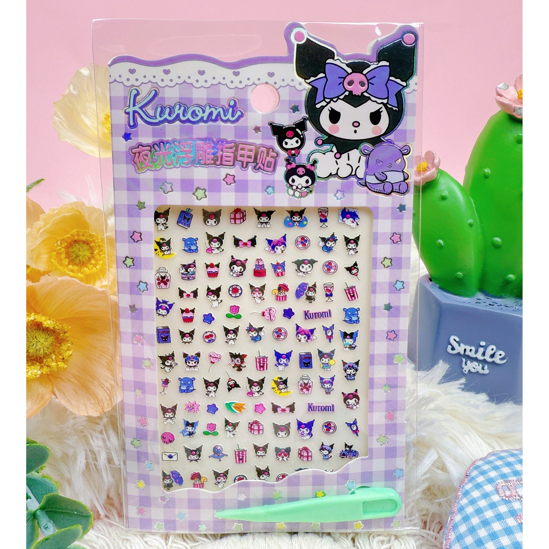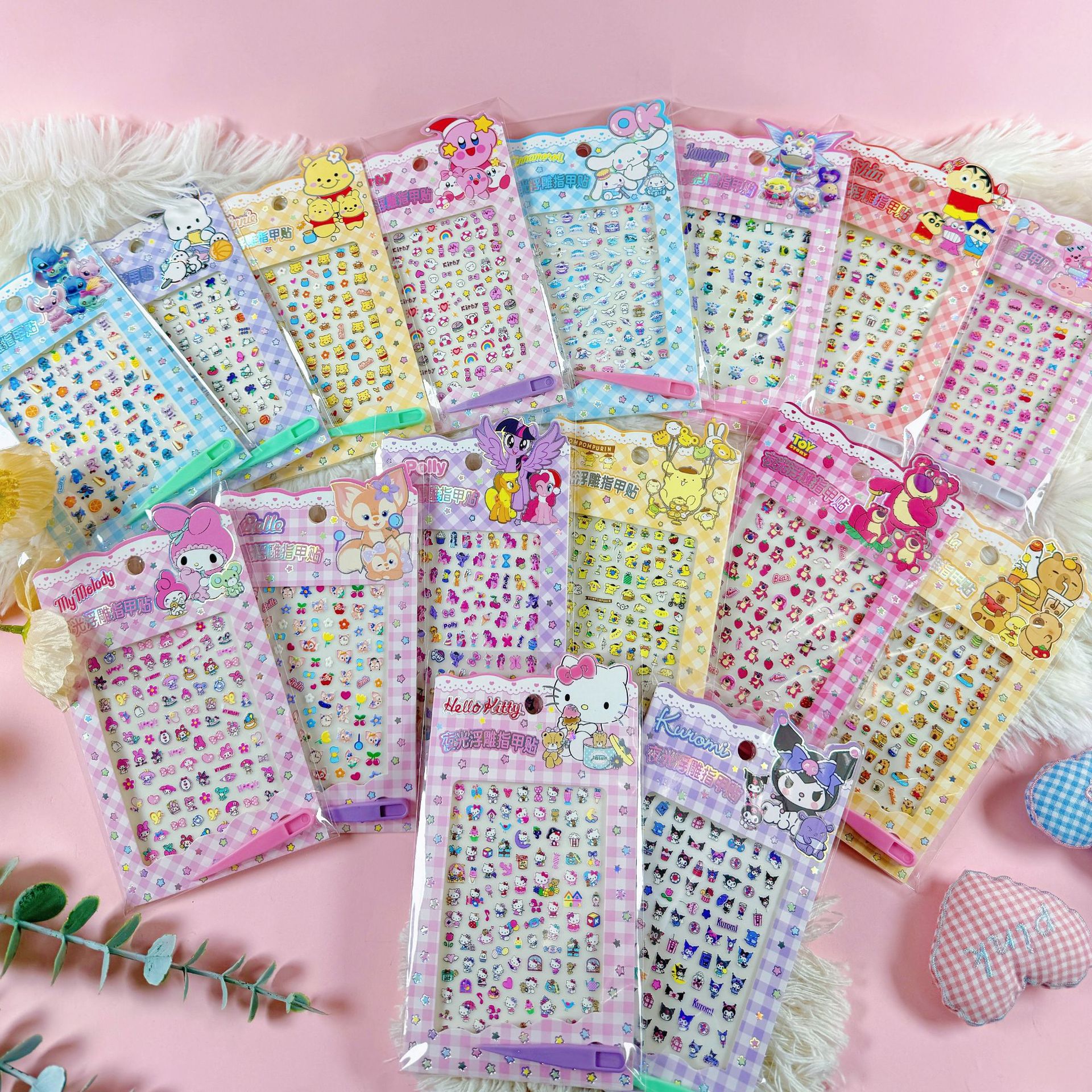3D 양각 어린이 만화 산리오 쿨로 미 방수 네일 패치 헬로 키티 빛나는 소녀 네일 아트 스티커스토어 가기