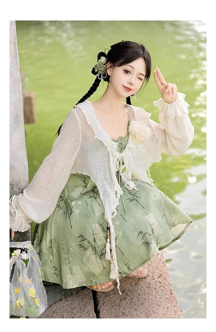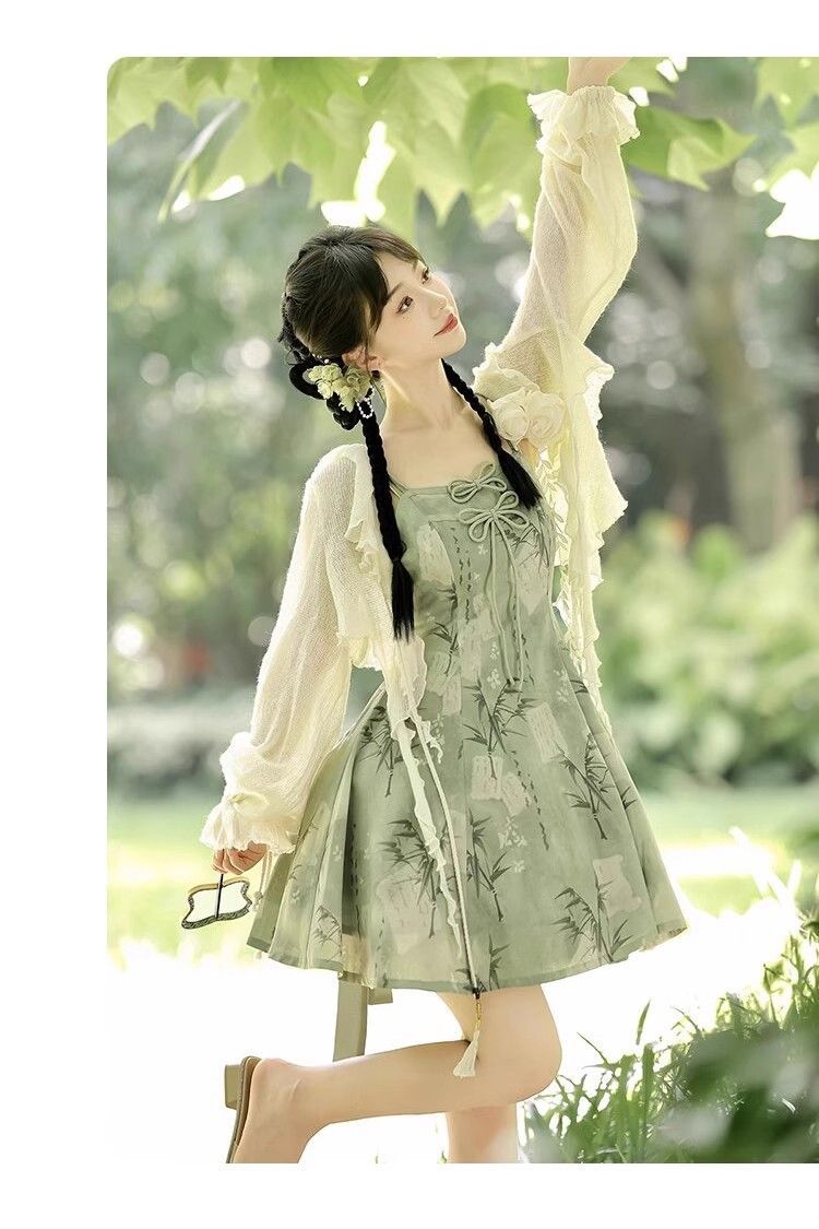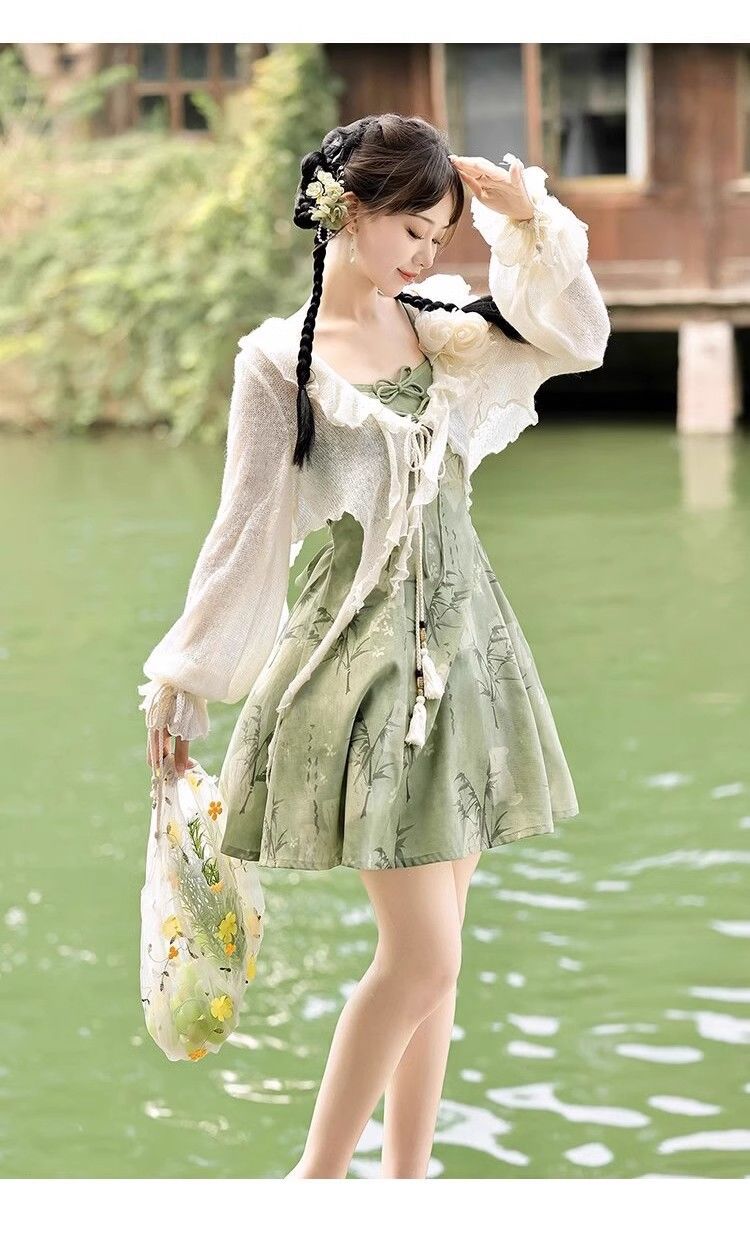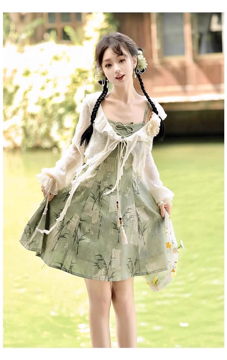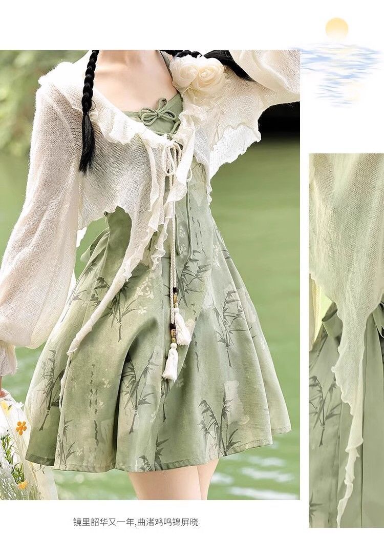 중국 스타일 원피스 여성의 2025 새로운 트렌드 여행 사진 매일 달콤한 소녀 녹색 치마 요정 그룹스토어 가기