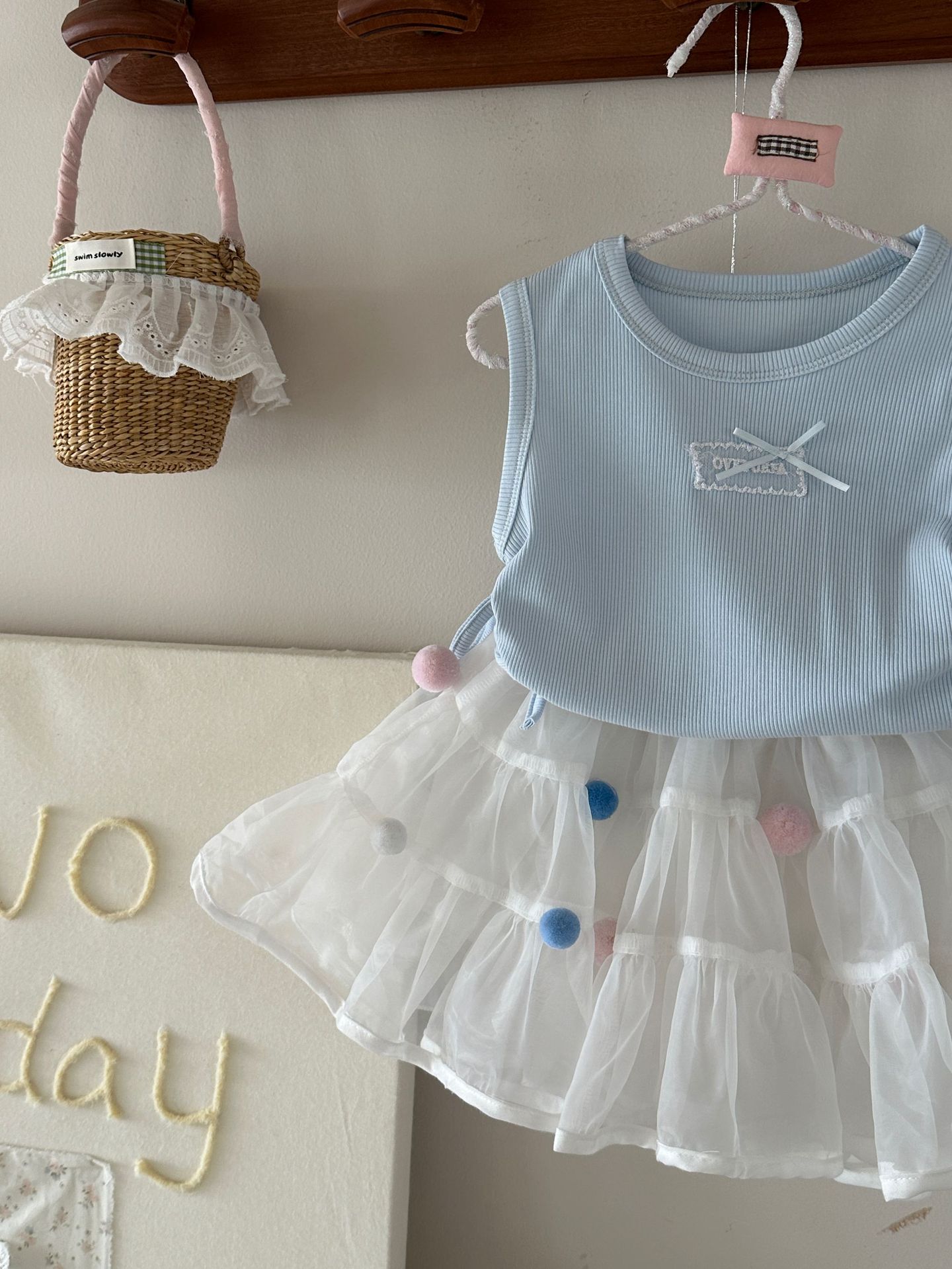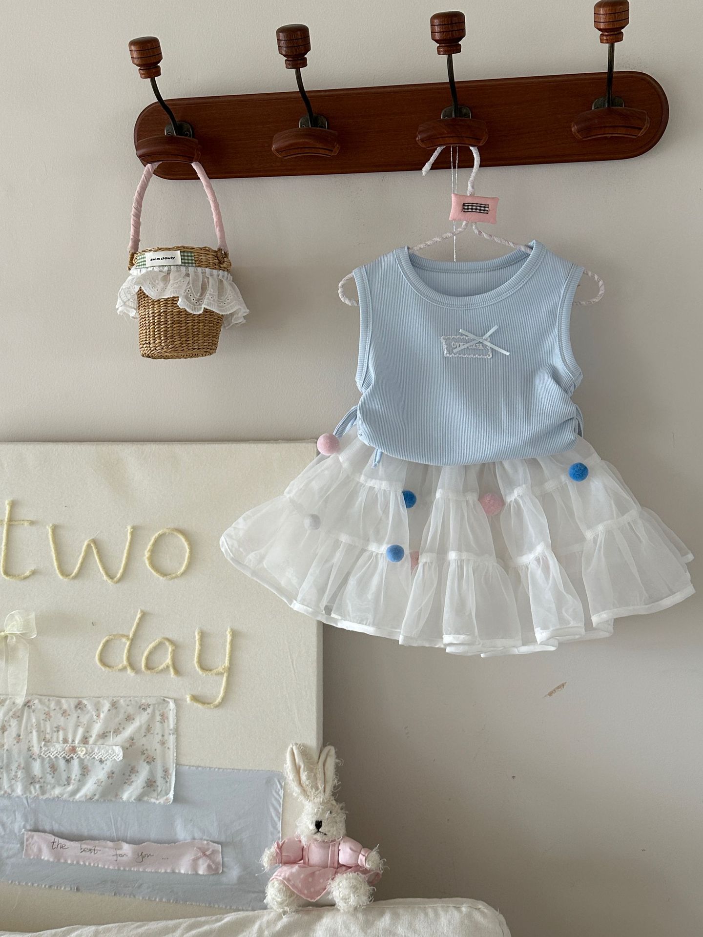 퍼프 스커트 여아 탑 슈트 티셔츠 여름 옷 2025 신생아 민소매 셔츠 아동 A급 의류스토어 가기