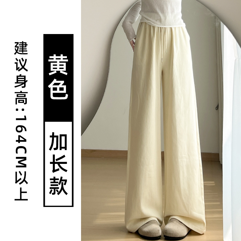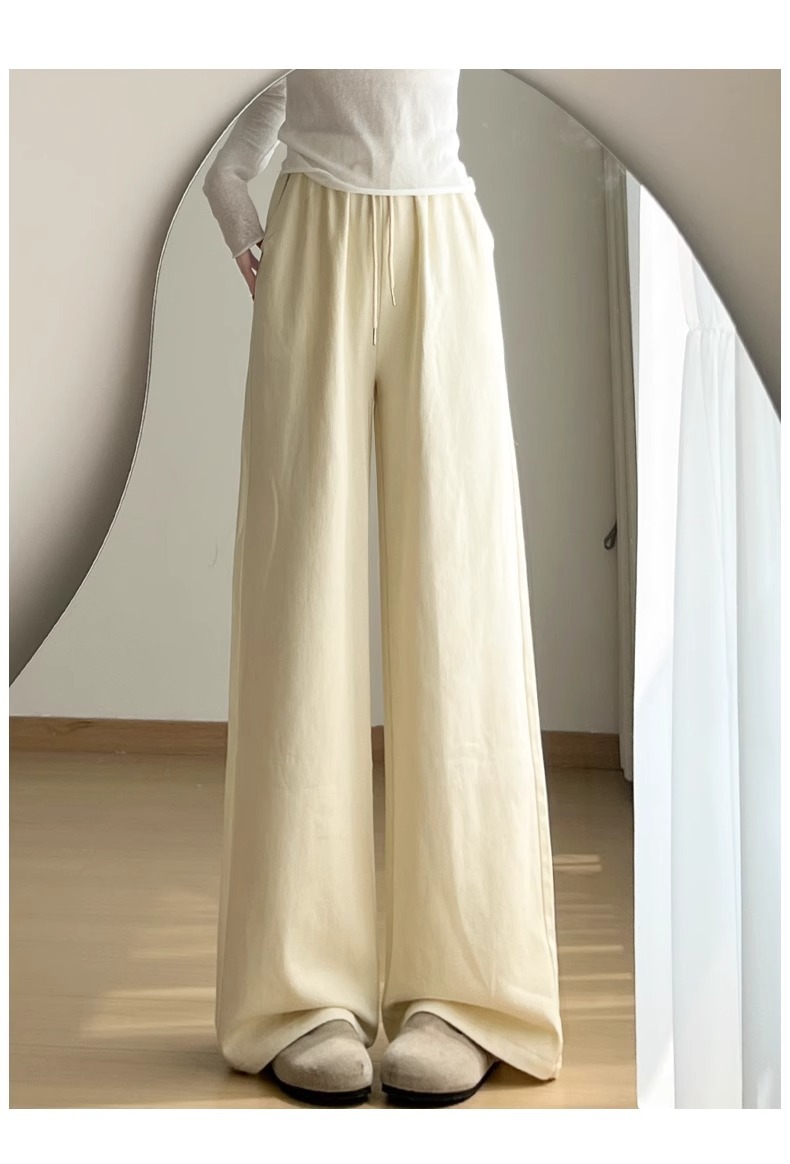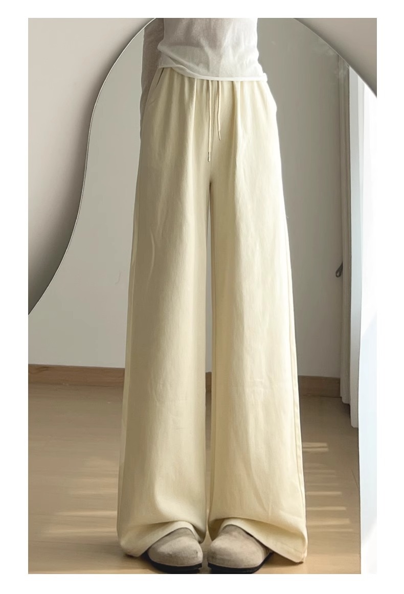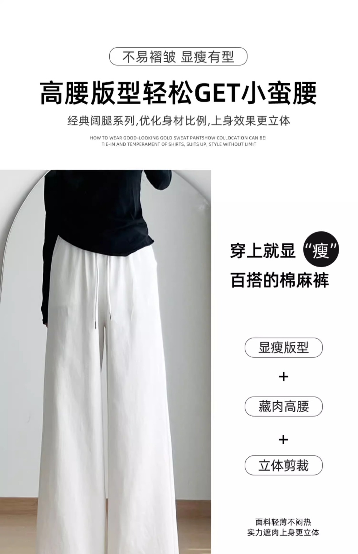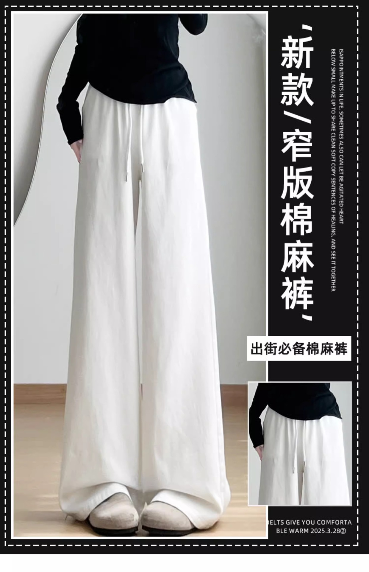 화이트 코튼 린넨 와이드 레그 바지 여자 여름 2025 새로운 높은 허리 스트레이트 좁은 슬림 게으른 느낌 얇은 바지스토어 가기