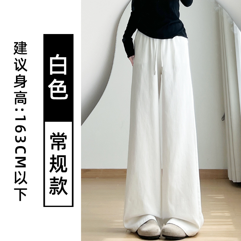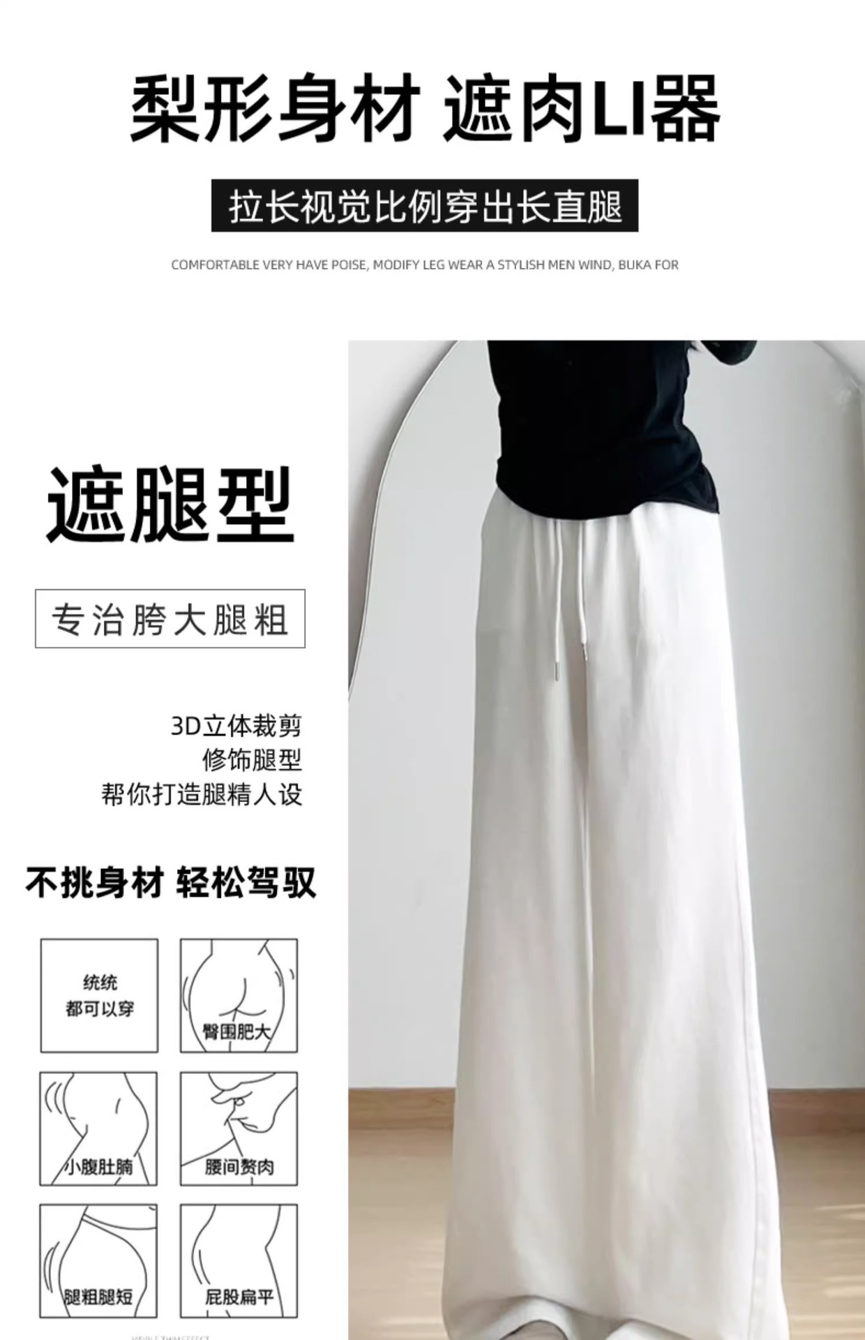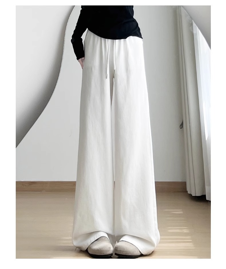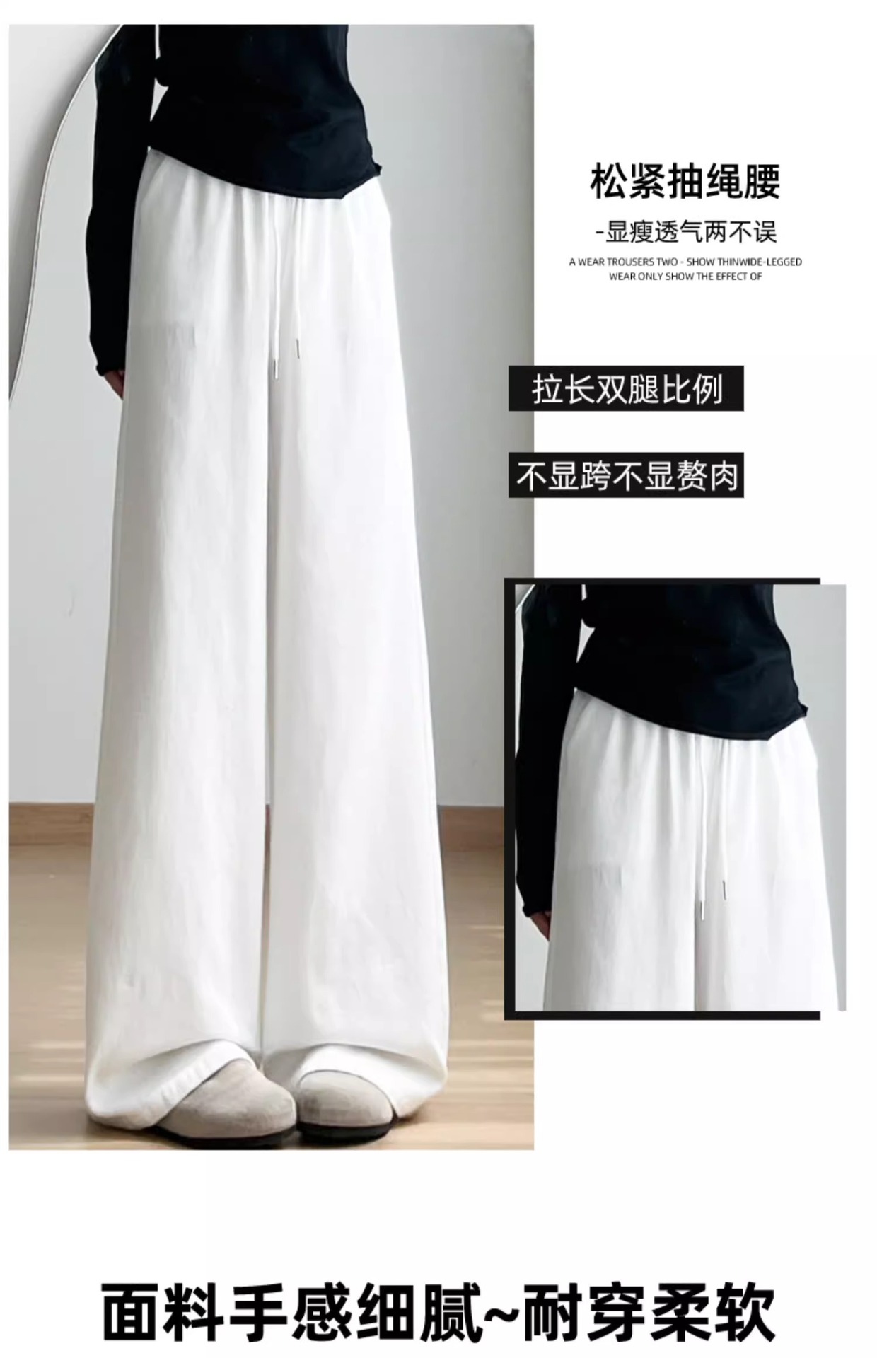 화이트 코튼 린넨 와이드 레그 바지 여자 여름 2025 새로운 높은 허리 스트레이트 좁은 슬림 게으른 느낌 얇은 바지스토어 가기