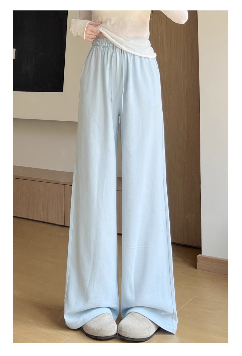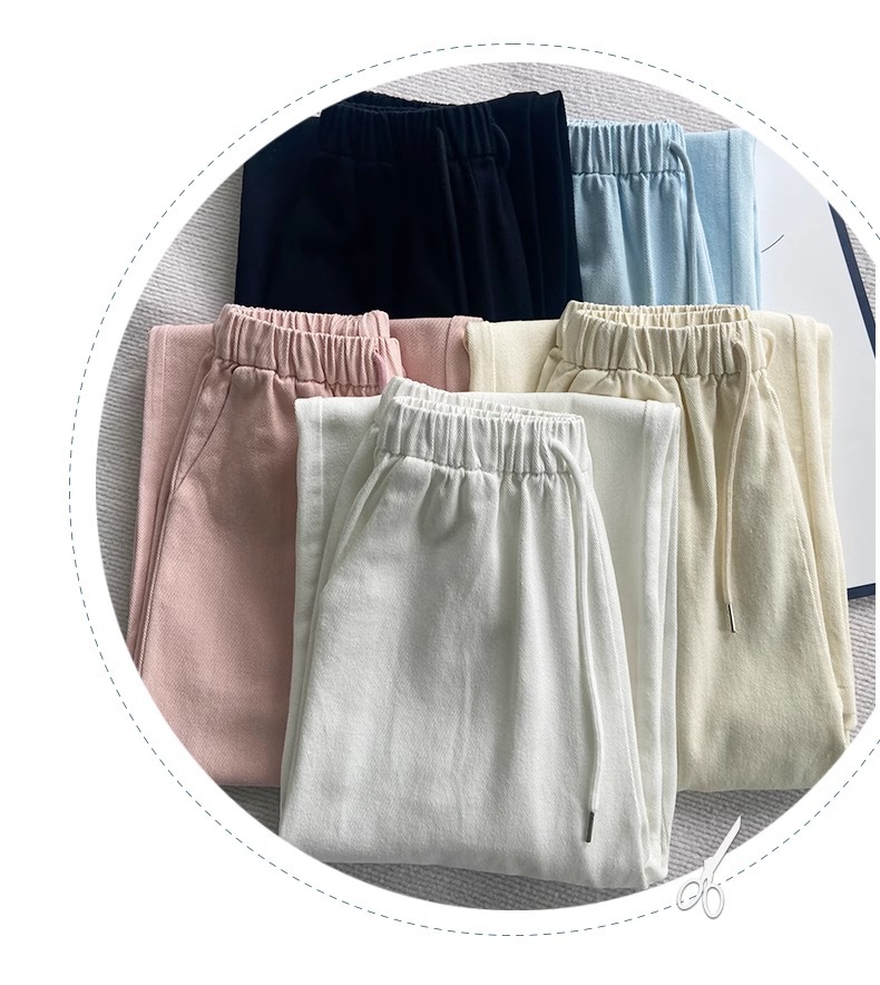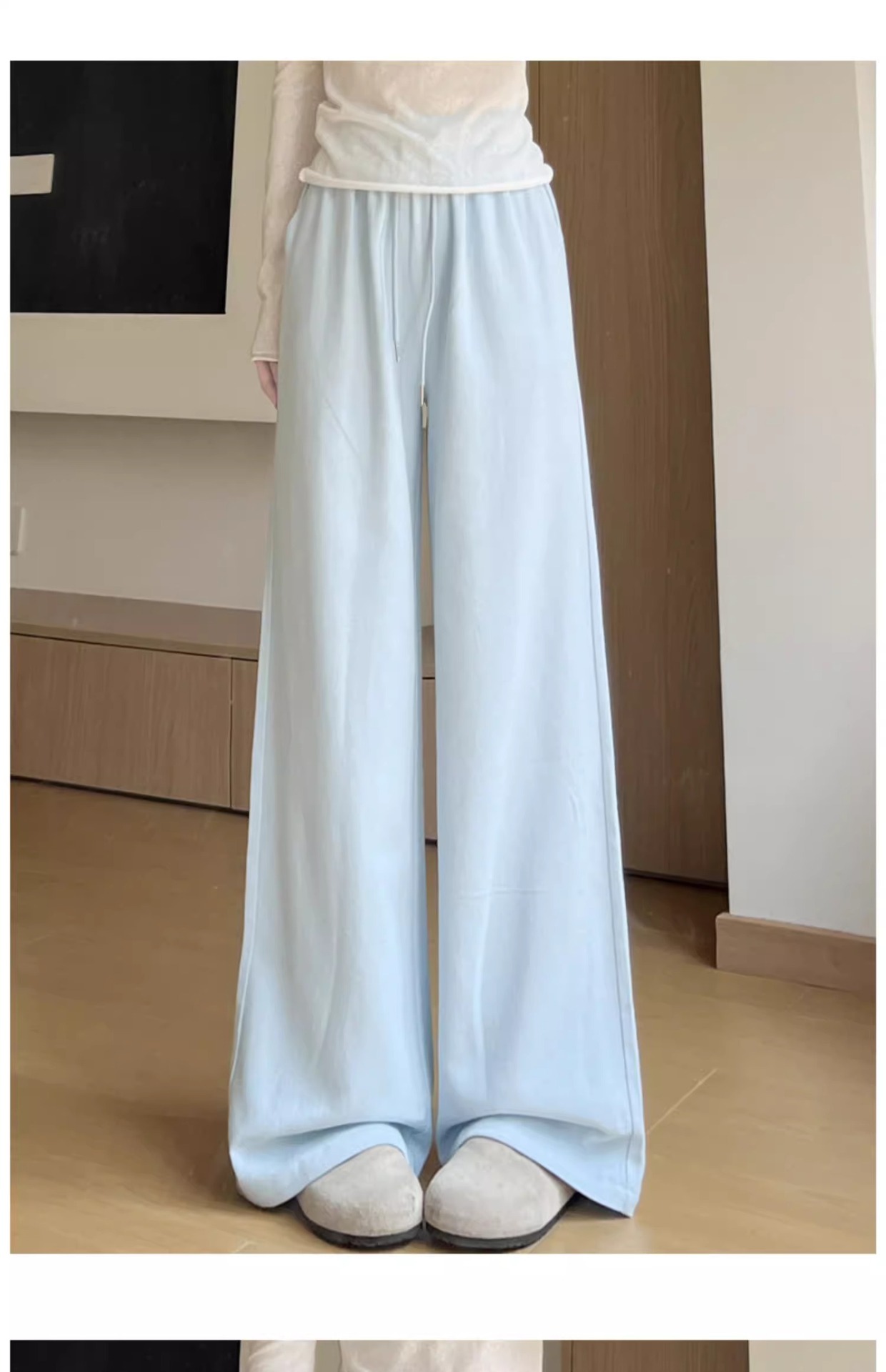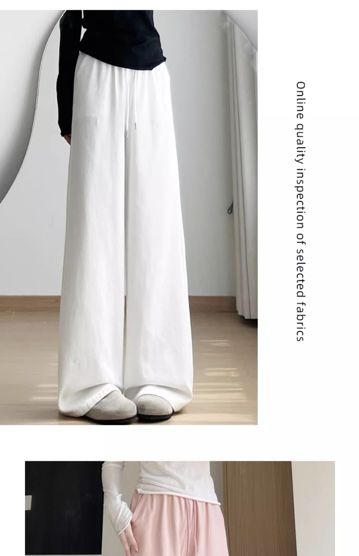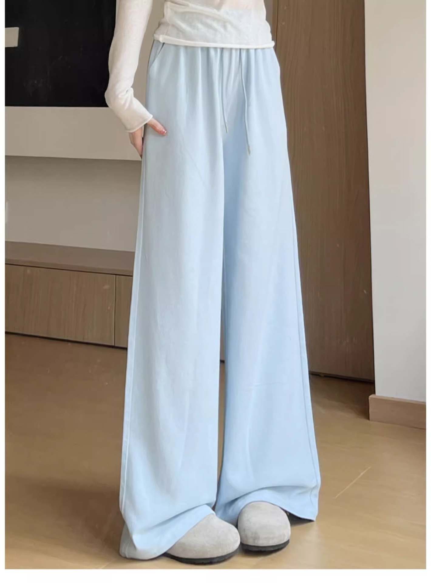 화이트 코튼 린넨 와이드 레그 바지 여자 여름 2025 새로운 높은 허리 스트레이트 좁은 슬림 게으른 느낌 얇은 바지스토어 가기