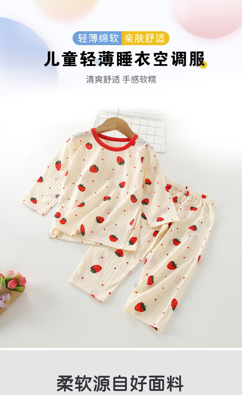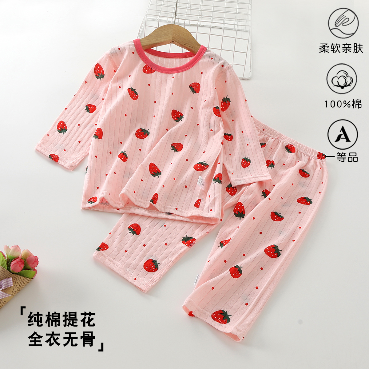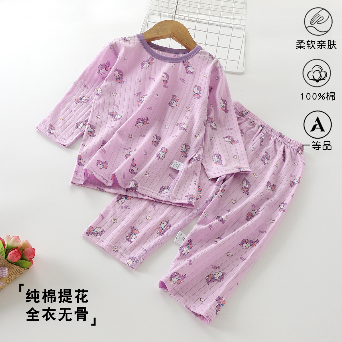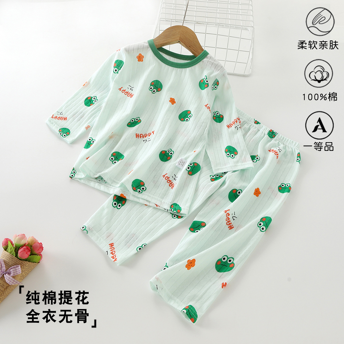 아기의 집 옷 봄과 여름 순면 남자와 여자 클래스 순면 잠옷 얇은 중소형 어린이 에어컨 옷 세트
