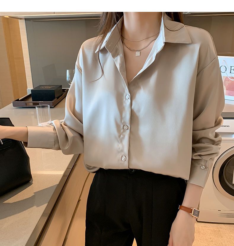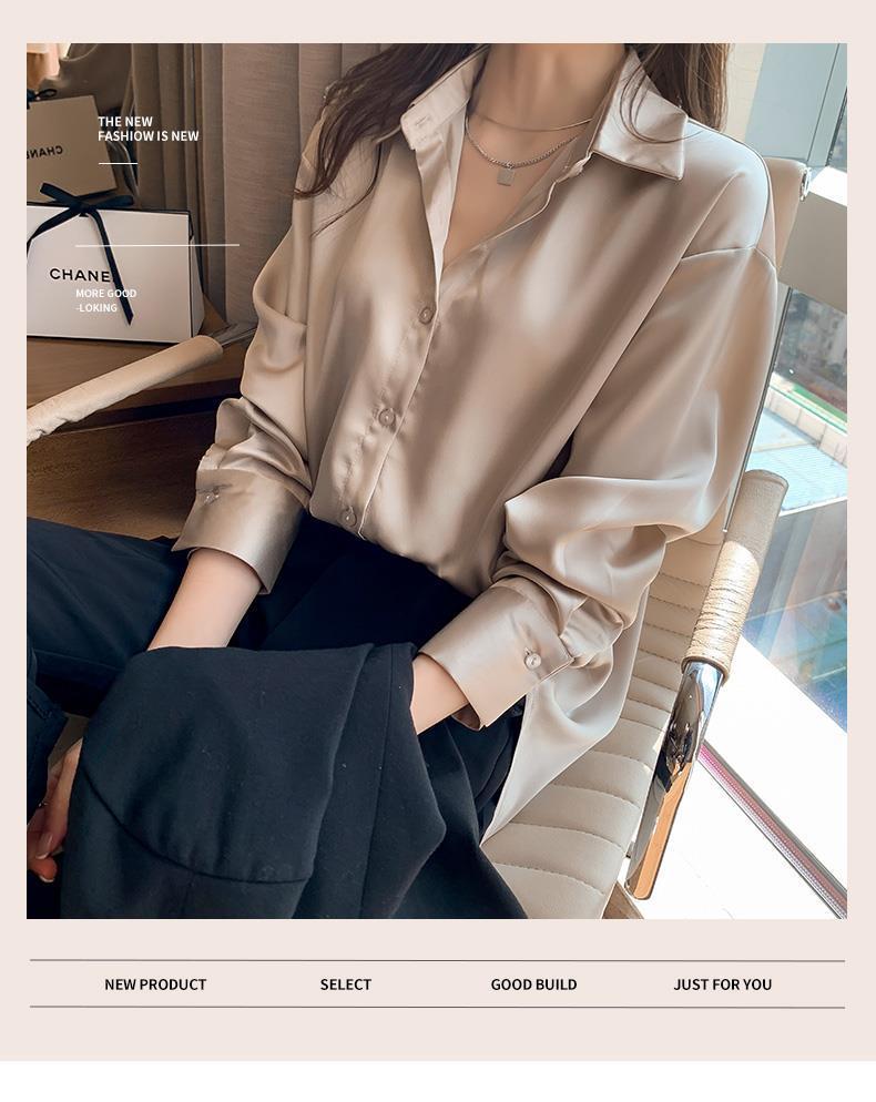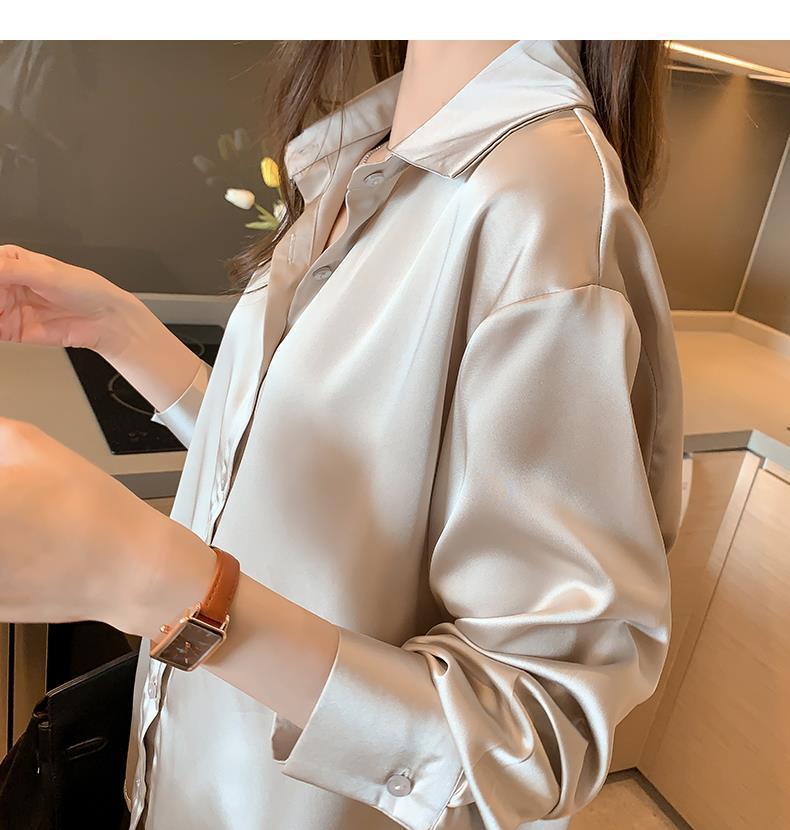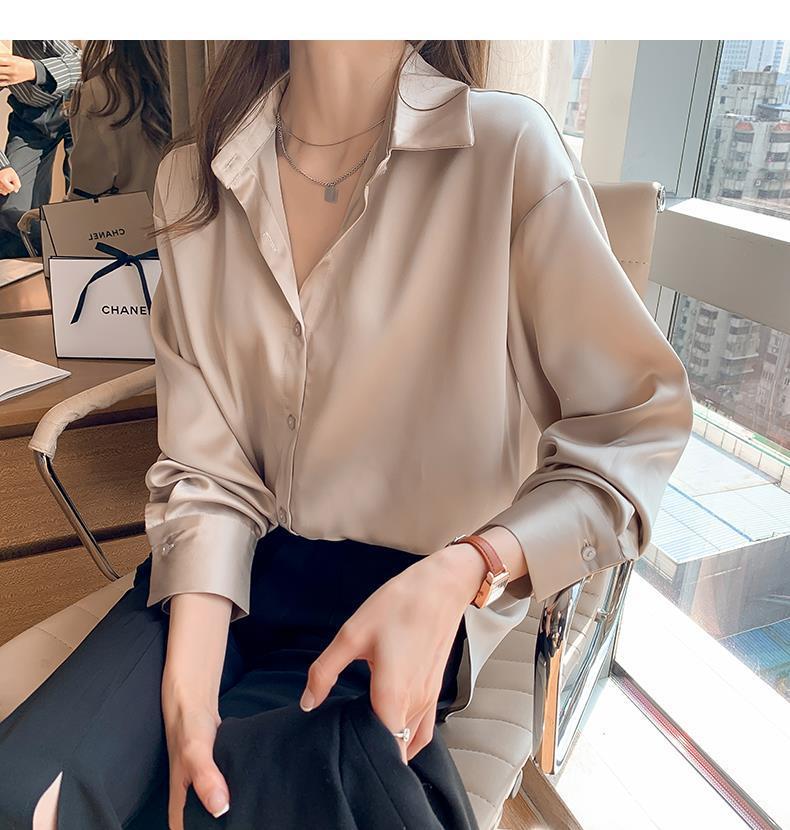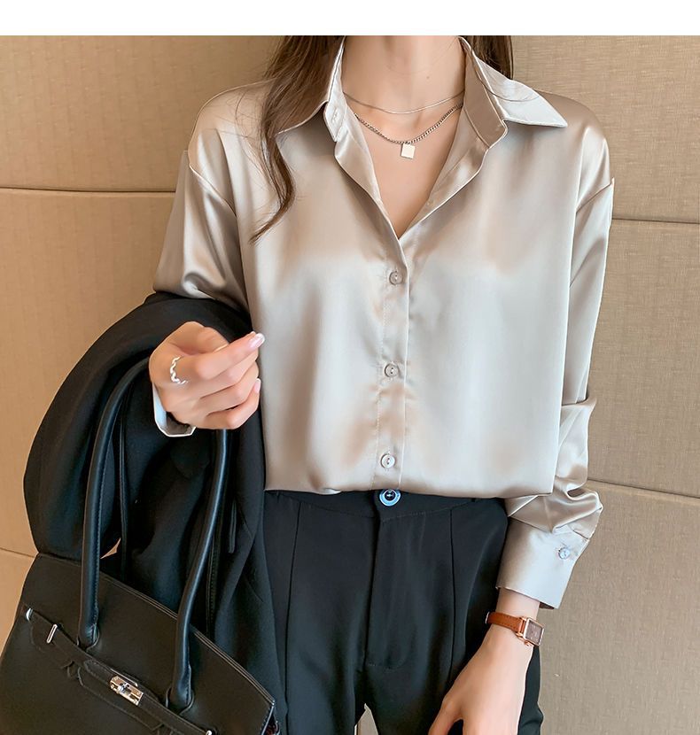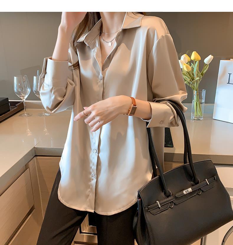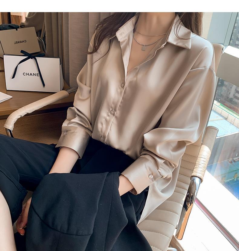 여름 새로운 샴페인 컬러 새틴 쉬폰 셔츠 여성 디자인 틈새 전문 자외선 차단 탑 얇은
