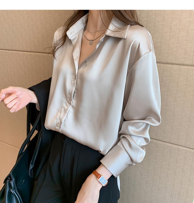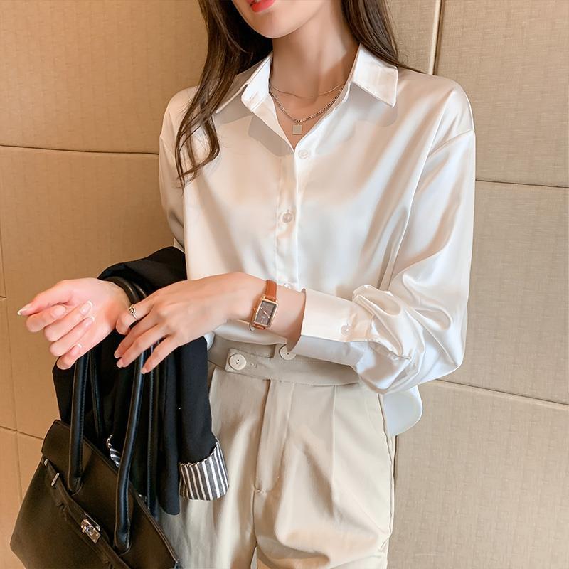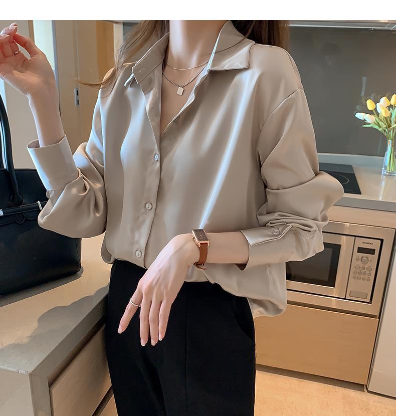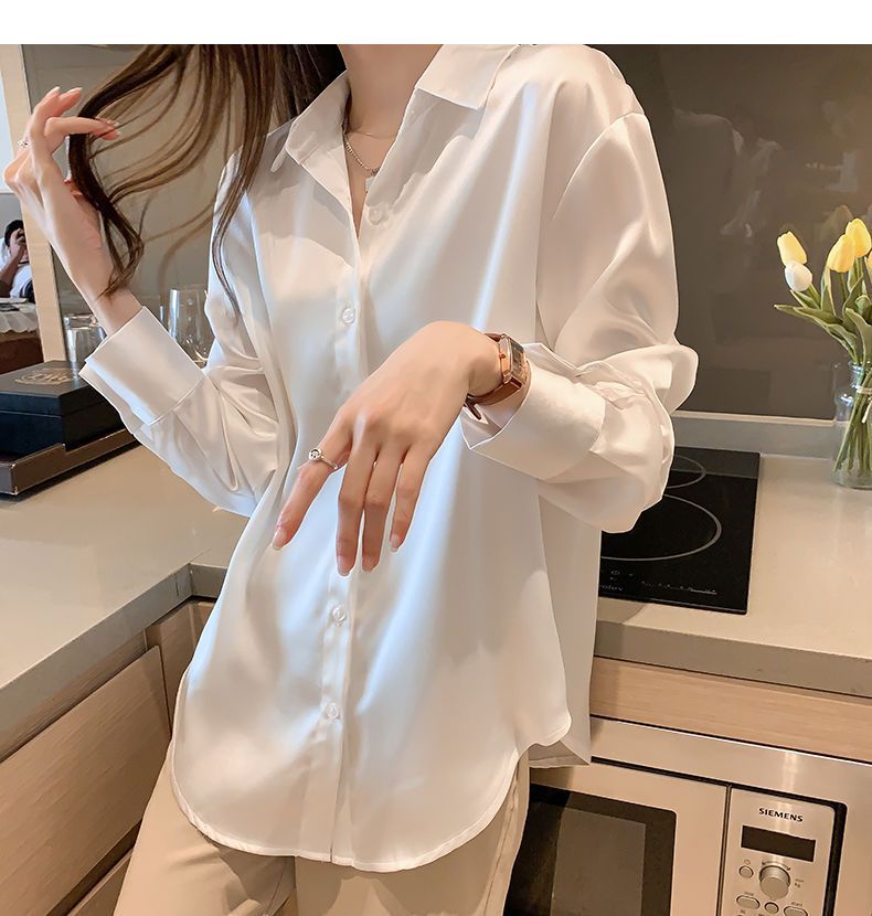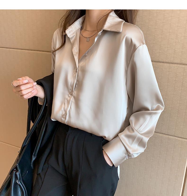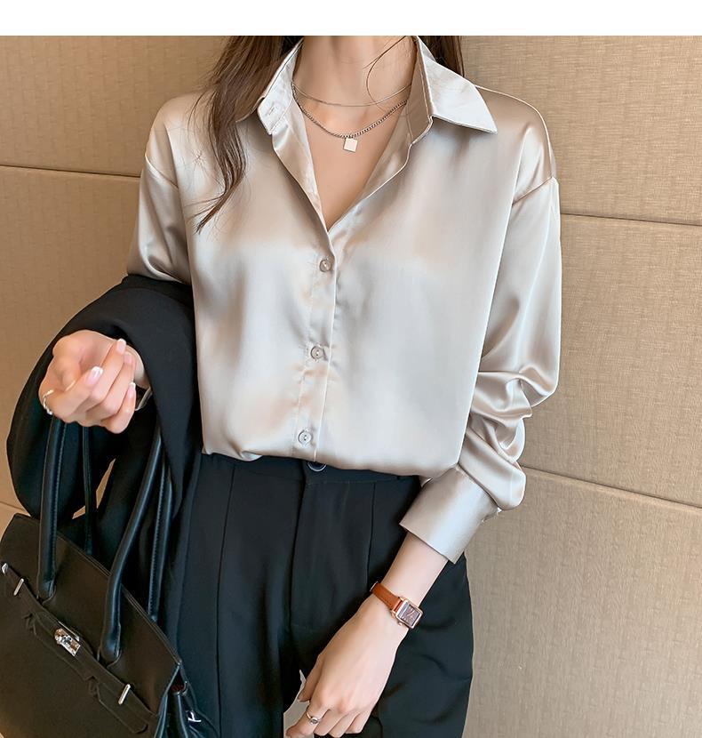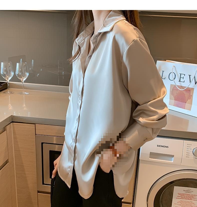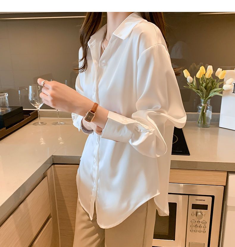 여름 새로운 샴페인 컬러 새틴 쉬폰 셔츠 여성 디자인 틈새 전문 자외선 차단 탑 얇은
