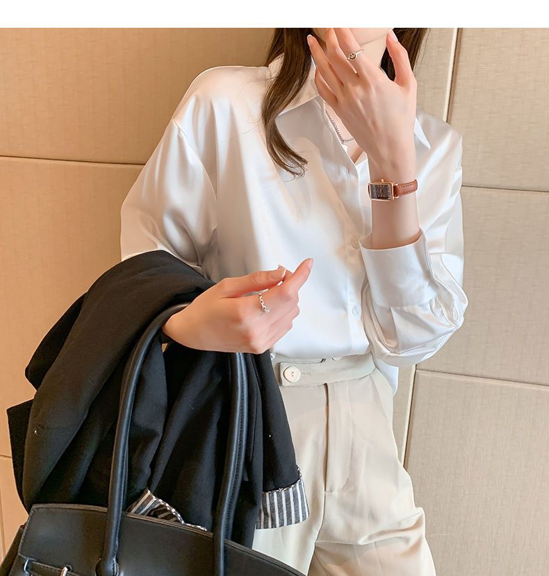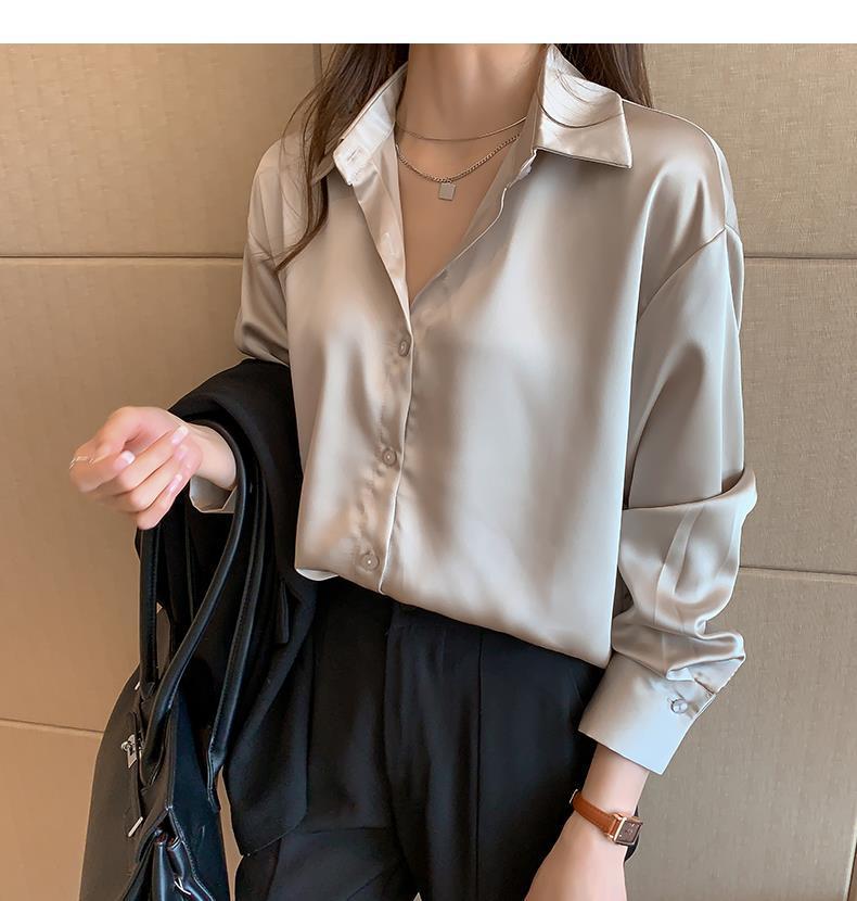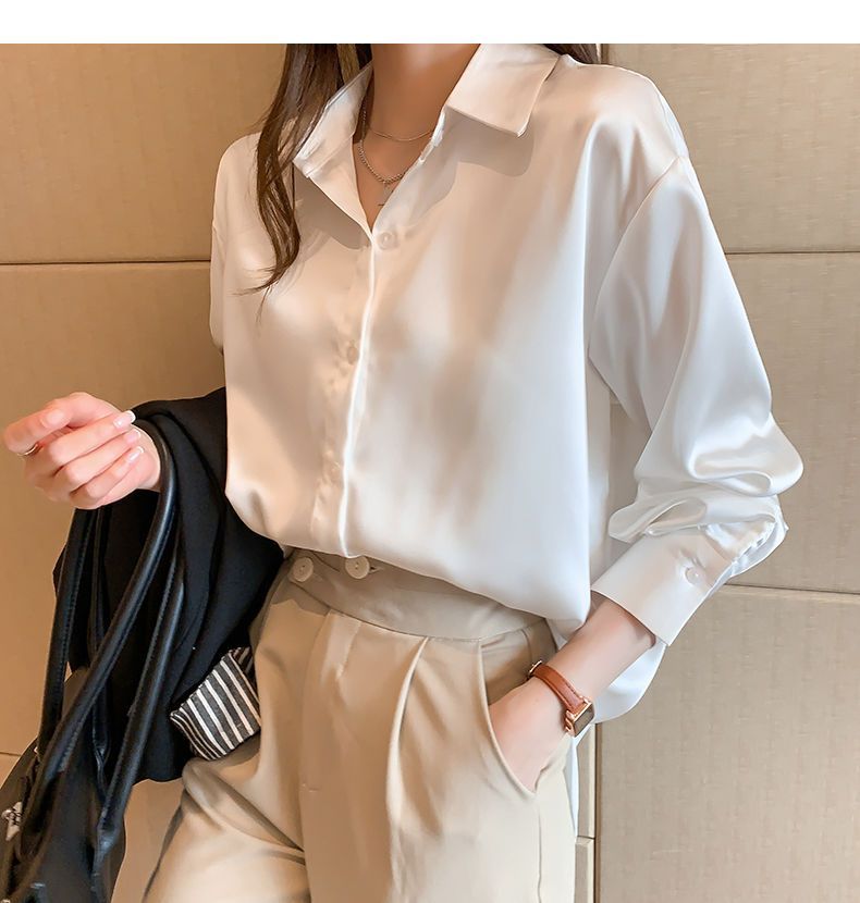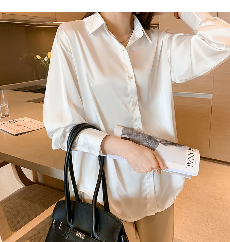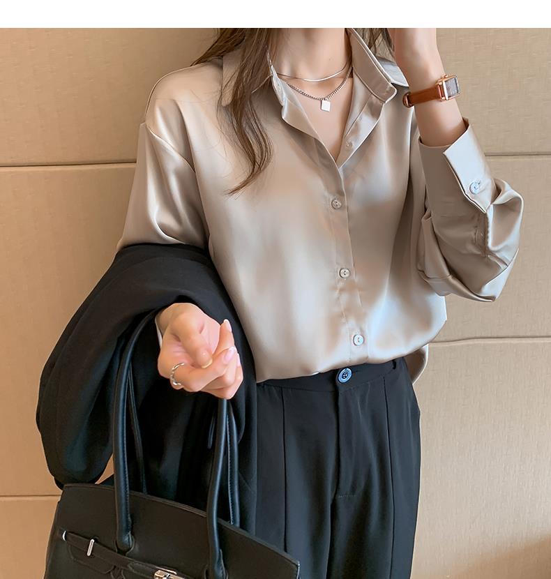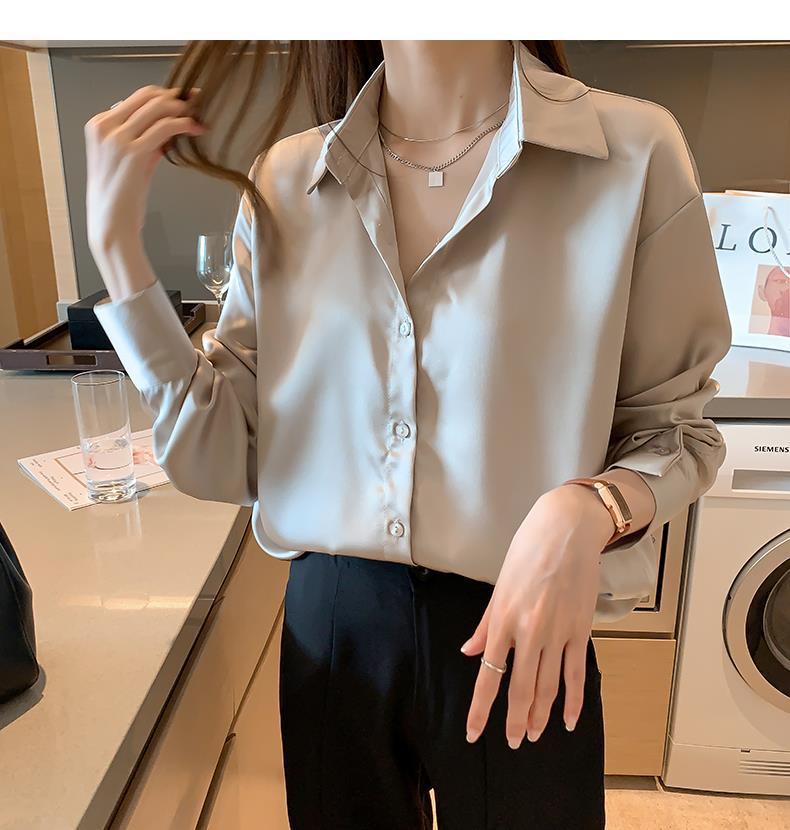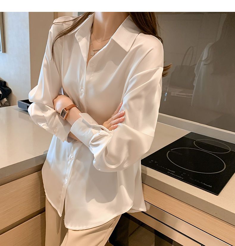 여름 새로운 샴페인 컬러 새틴 쉬폰 셔츠 여성 디자인 틈새 전문 자외선 차단 탑 얇은