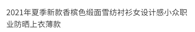 여름 새로운 샴페인 컬러 새틴 쉬폰 셔츠 여성 디자인 틈새 전문 자외선 차단 탑 얇은스토어 가기