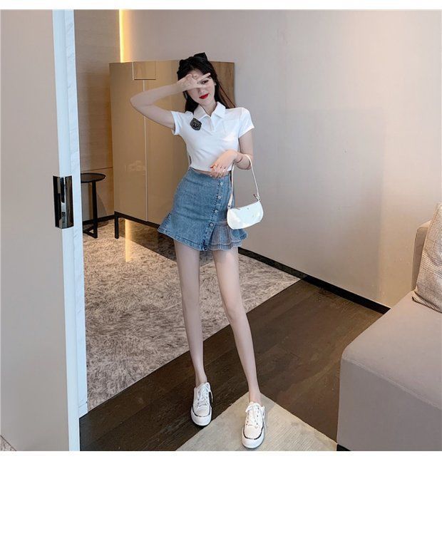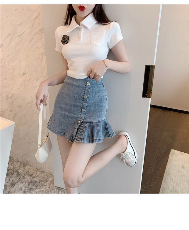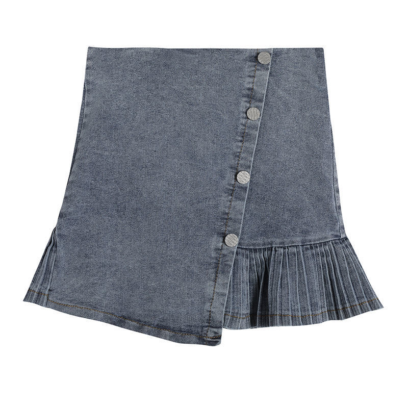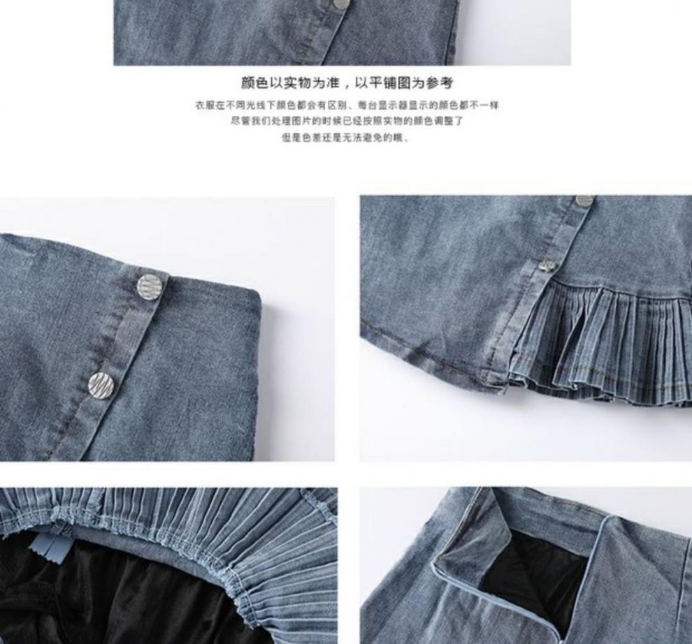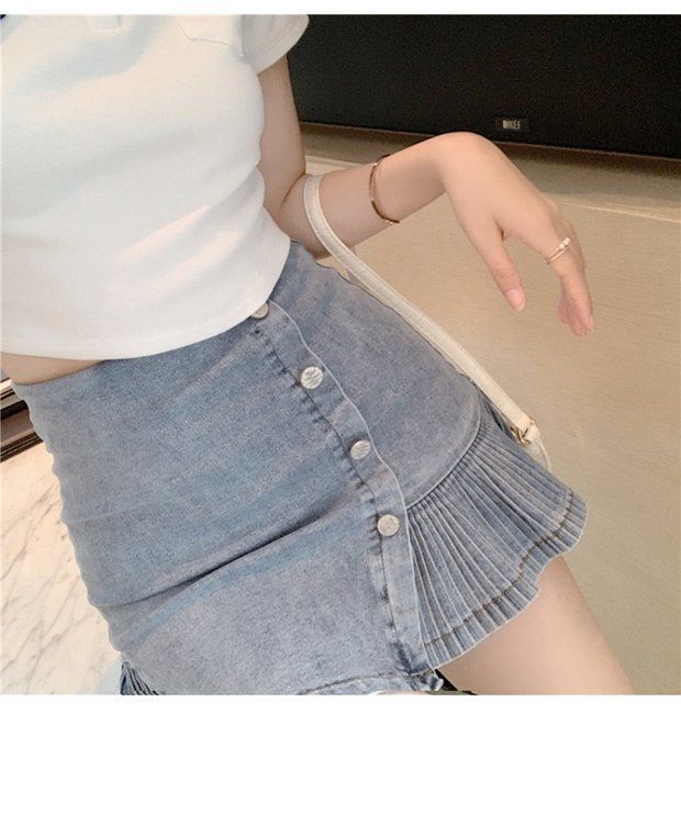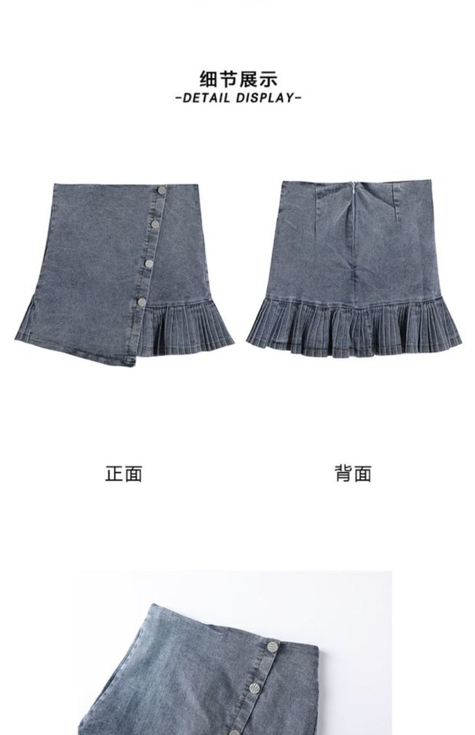 데님 짧은 치마 여성의 여름 새로운 패션 투피스 세트 높은 허리 불규칙한 엉덩이 스커트 작은 피쉬스토어 가기