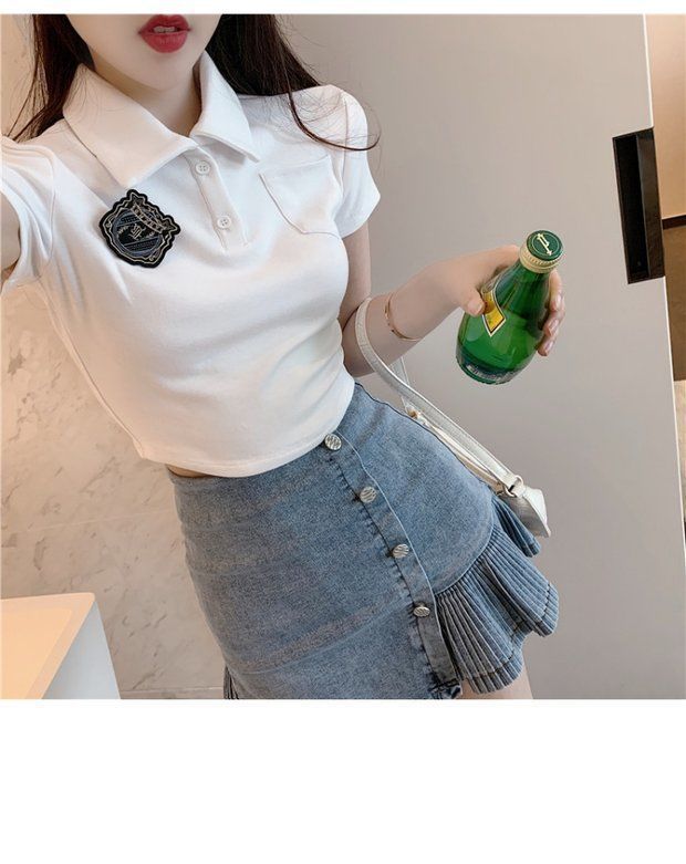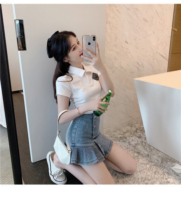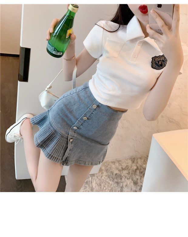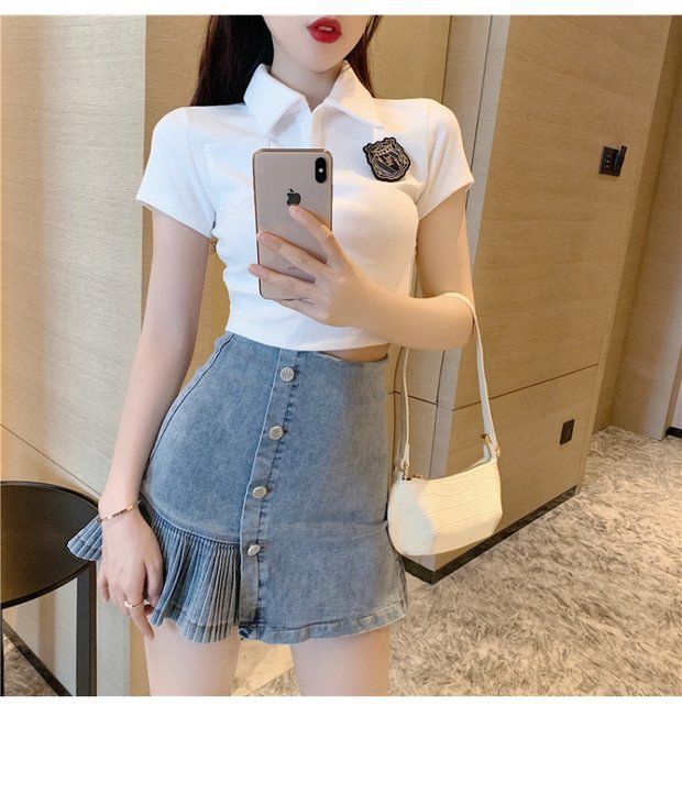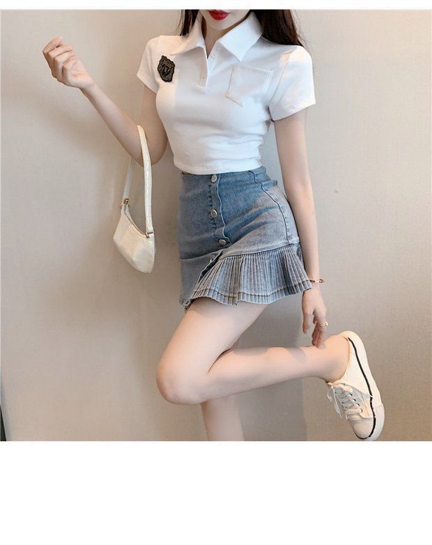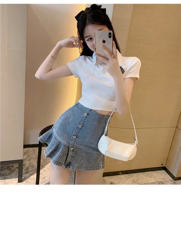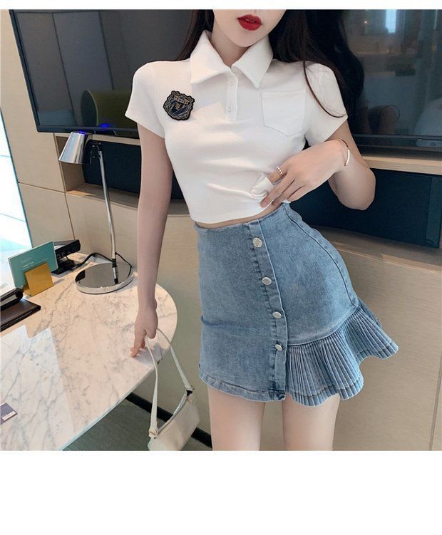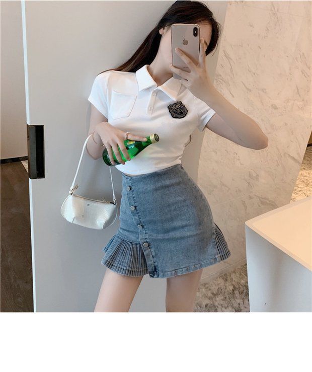데님 짧은 치마 여성의 여름 새로운 패션 투피스 세트 높은 허리 불규칙한 엉덩이 스커트 작은 피쉬스토어 가기