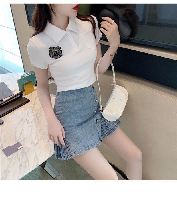 데님 짧은 치마 여성의 여름 새로운 패션 투피스 세트 높은 허리 불규칙한 엉덩이 스커트 작은 피쉬
