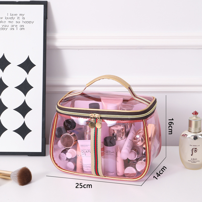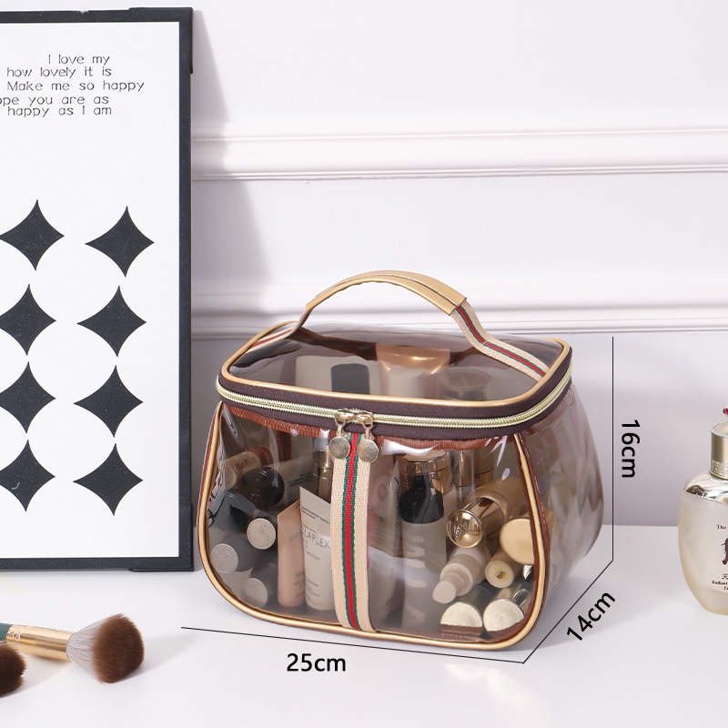 새로운 PU 화장품 가방 휴대용 방수 투명 대용량 여행용 수납 가방 고급스러운 세면 용품 가방