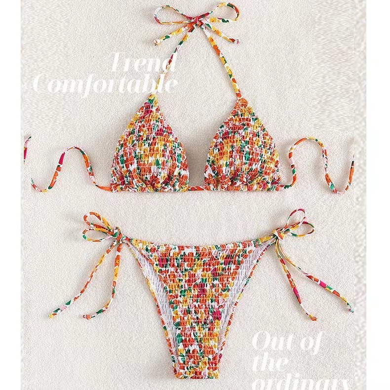 2025 새로운 삼각형 가방 수영복 여성 국경 간 섹시한 3 점 스트랩 작은 가슴 비치 인쇄 스파 비키니