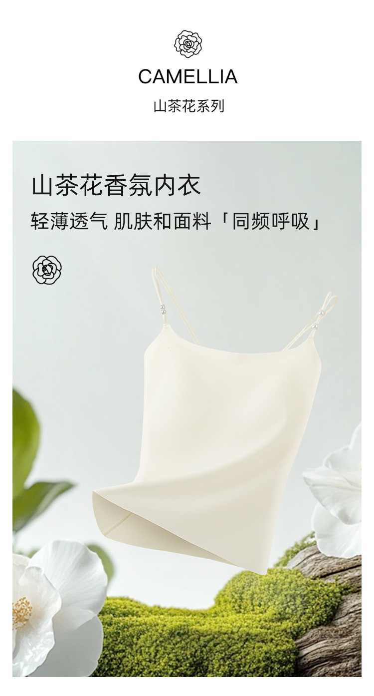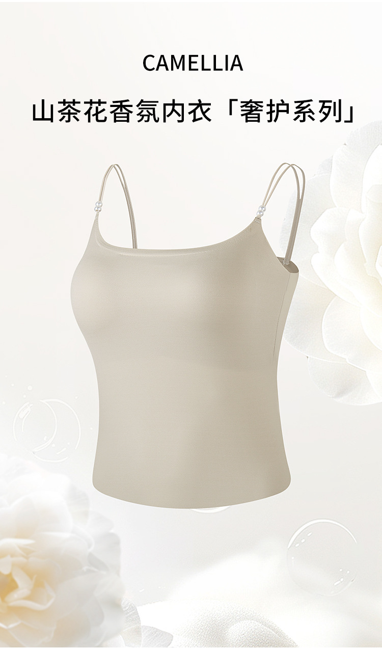 허브 동일한 동백향 진주 캐미솔 가볍고 시원한 느낌의 가슴 패드가 있는 여성용 올인원 아름다운 등 속옷