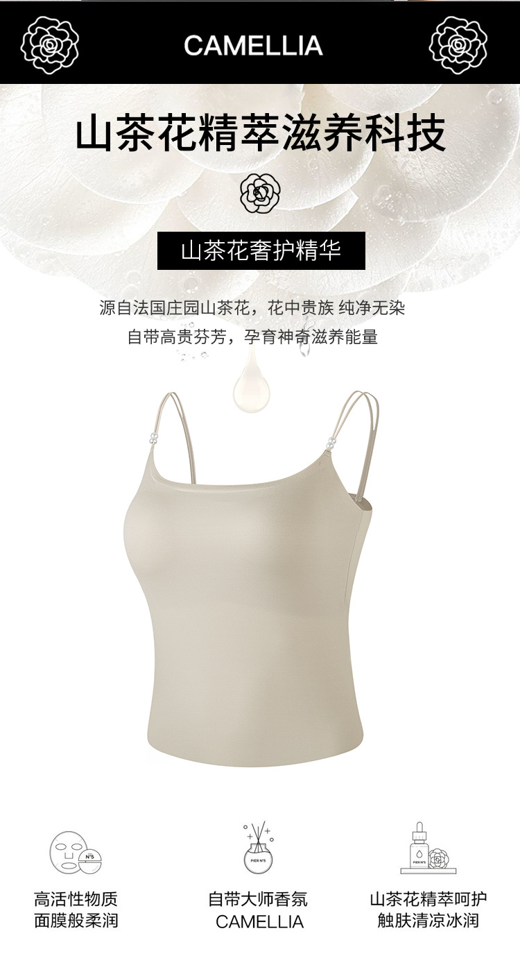 허브 동일한 동백향 진주 캐미솔 가볍고 시원한 느낌의 가슴 패드가 있는 여성용 올인원 아름다운 등 속옷스토어 가기