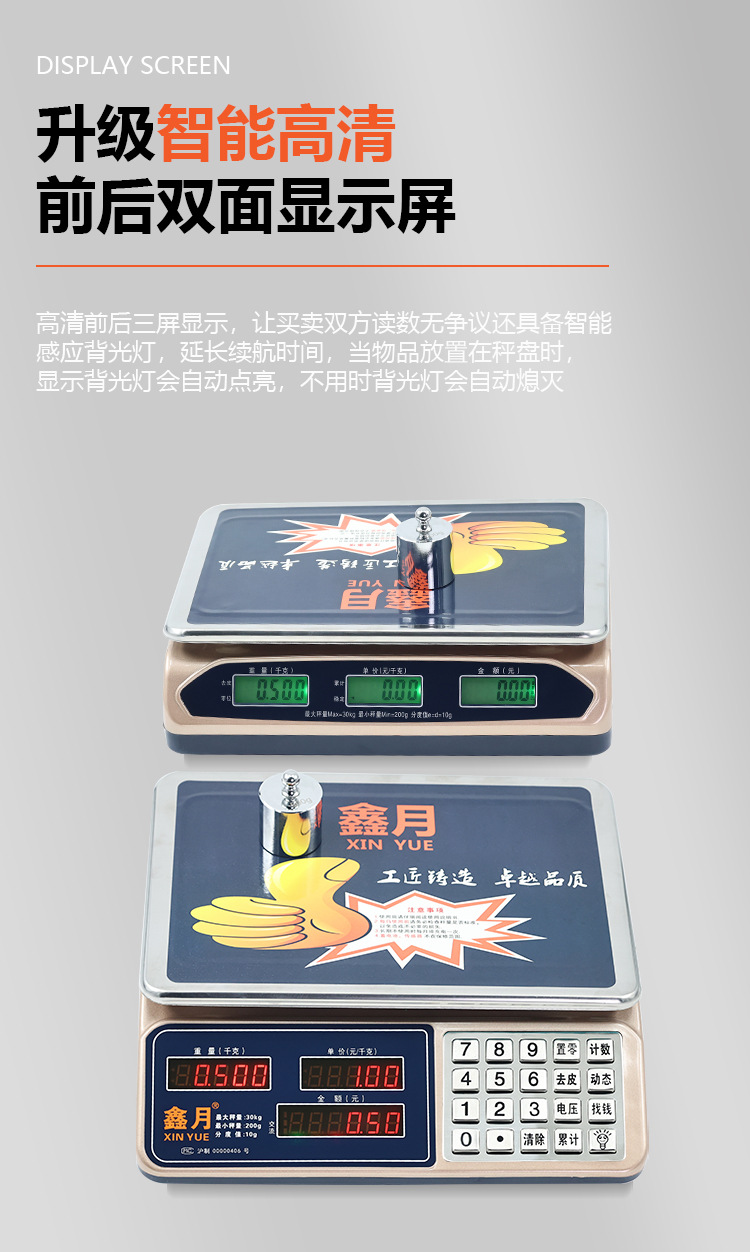 Xinyue 30kg 멀티 뷰 고화질 디스플레이 방충 방지 전자 규모 공장 판매 야채 실속 상업 전자 저울스토어 가기