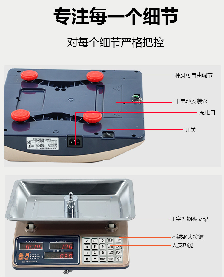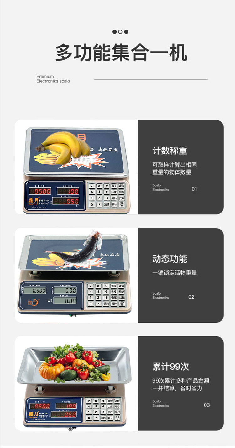 Xinyue 30kg 멀티 뷰 고화질 디스플레이 방충 방지 전자 규모 공장 판매 야채 실속 상업 전자 저울