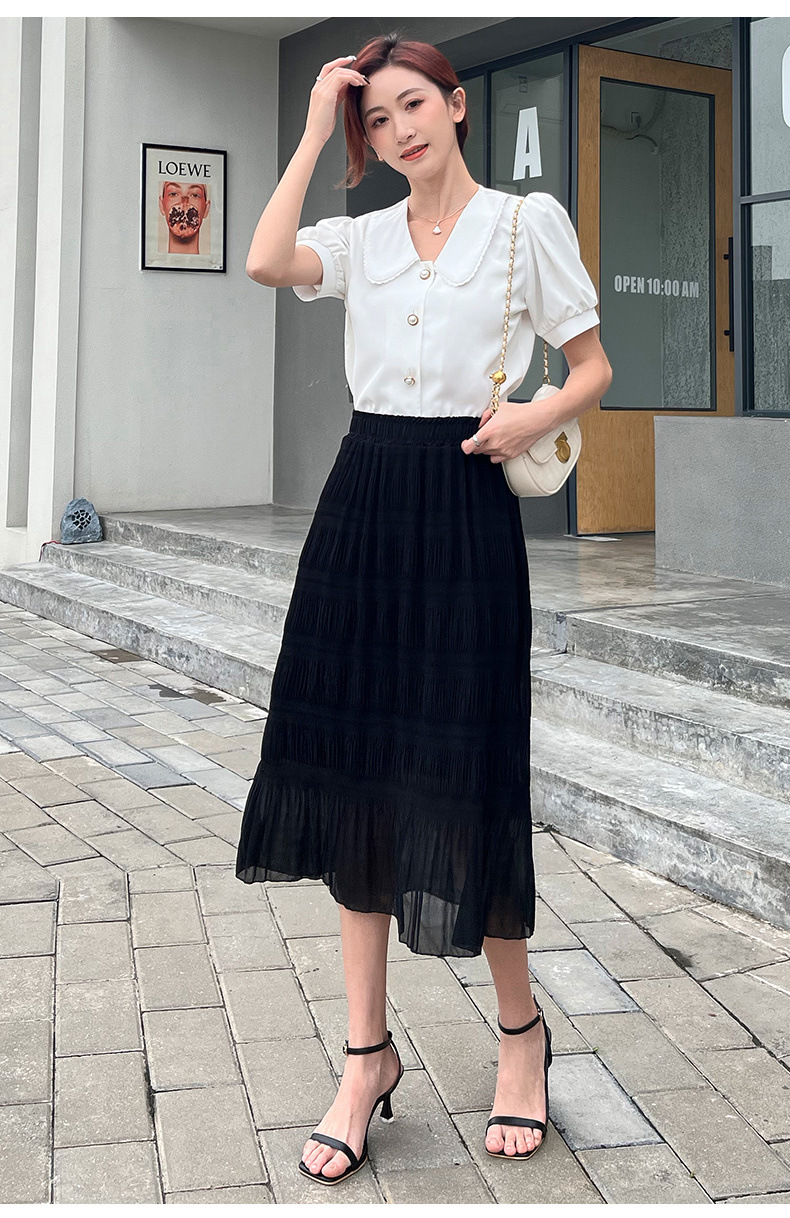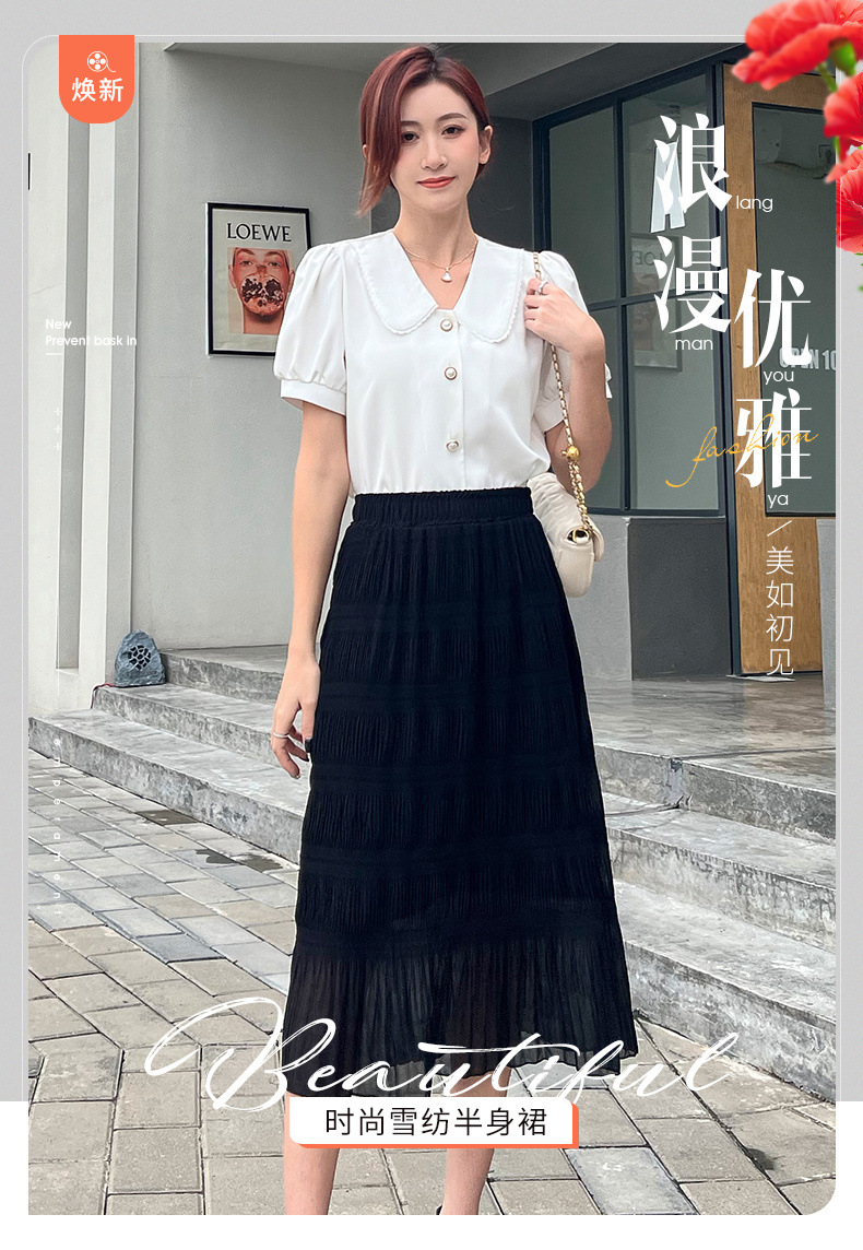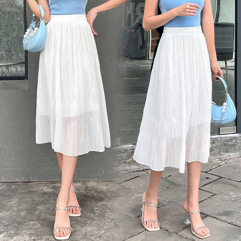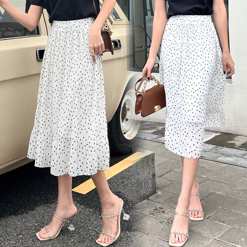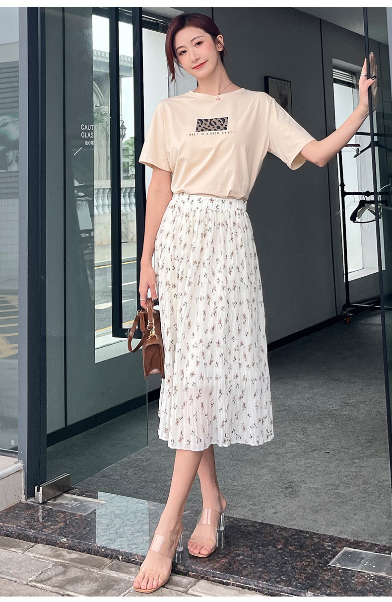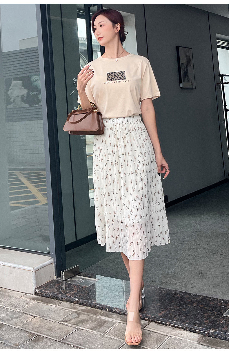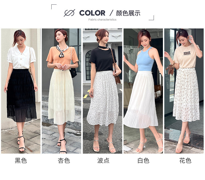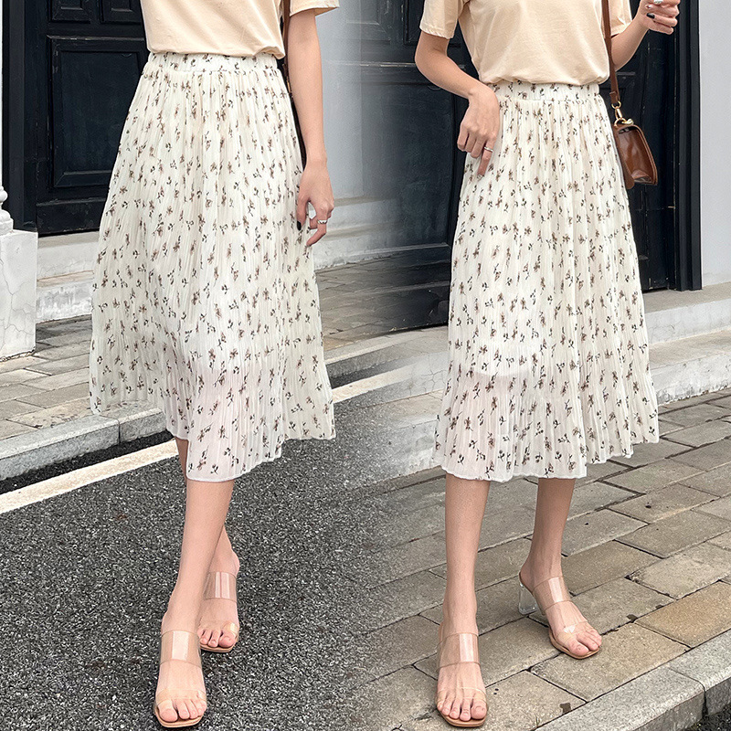 꽃 우아한 치마 스타일 쉬폰 신선한 치마 2024 여름 새로운 중간 길이의 높은 허리 슬리밍 긴 치마스토어 가기