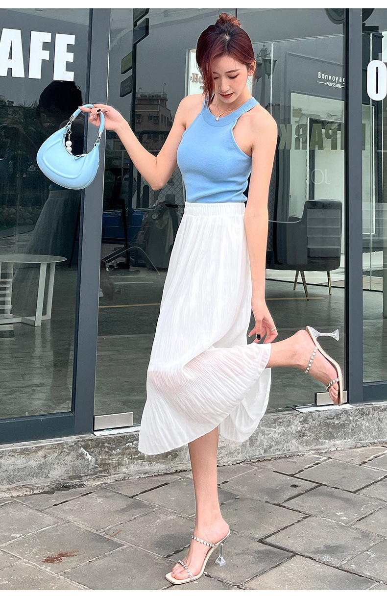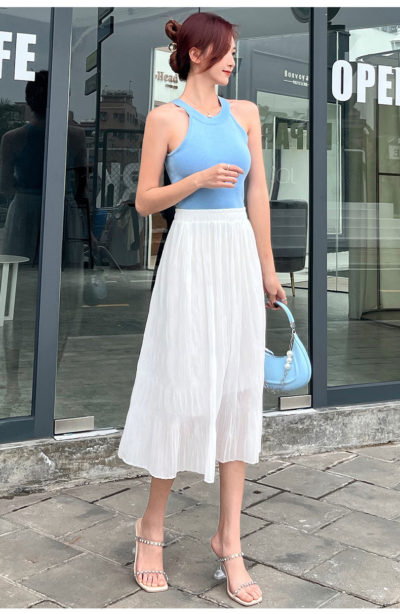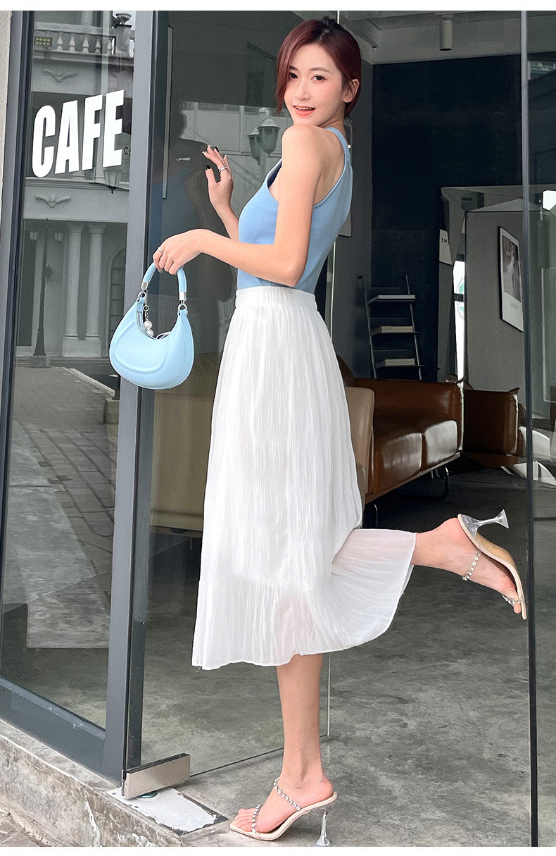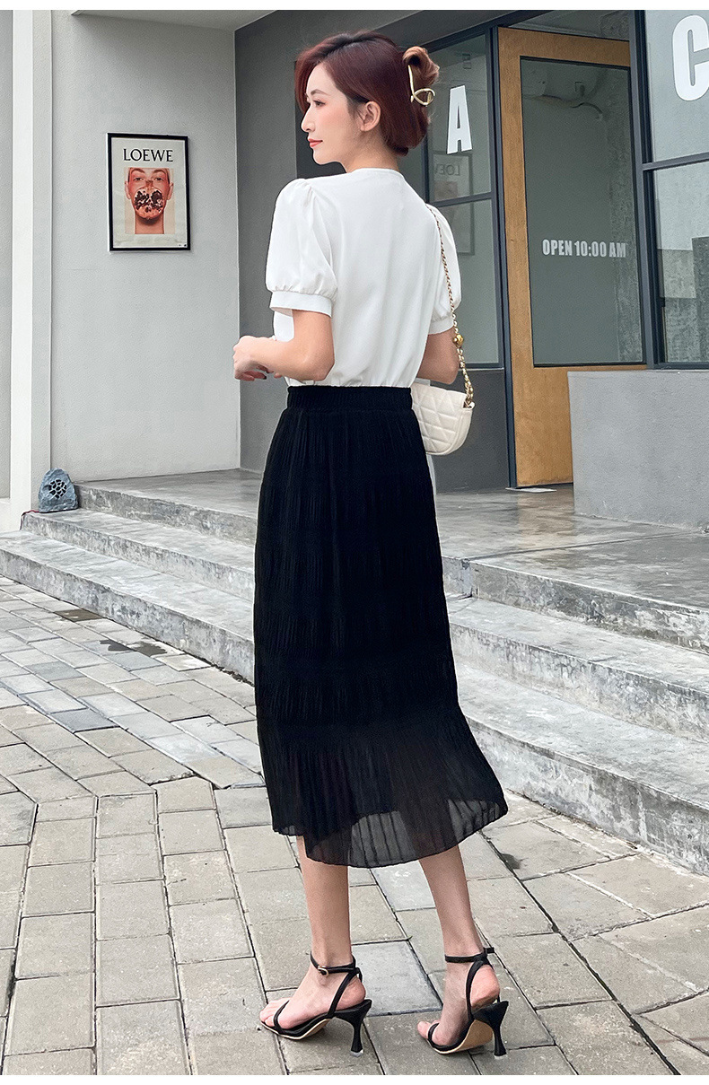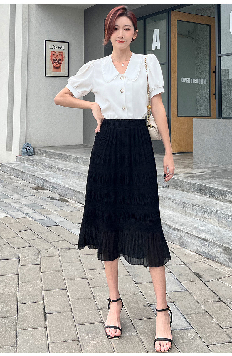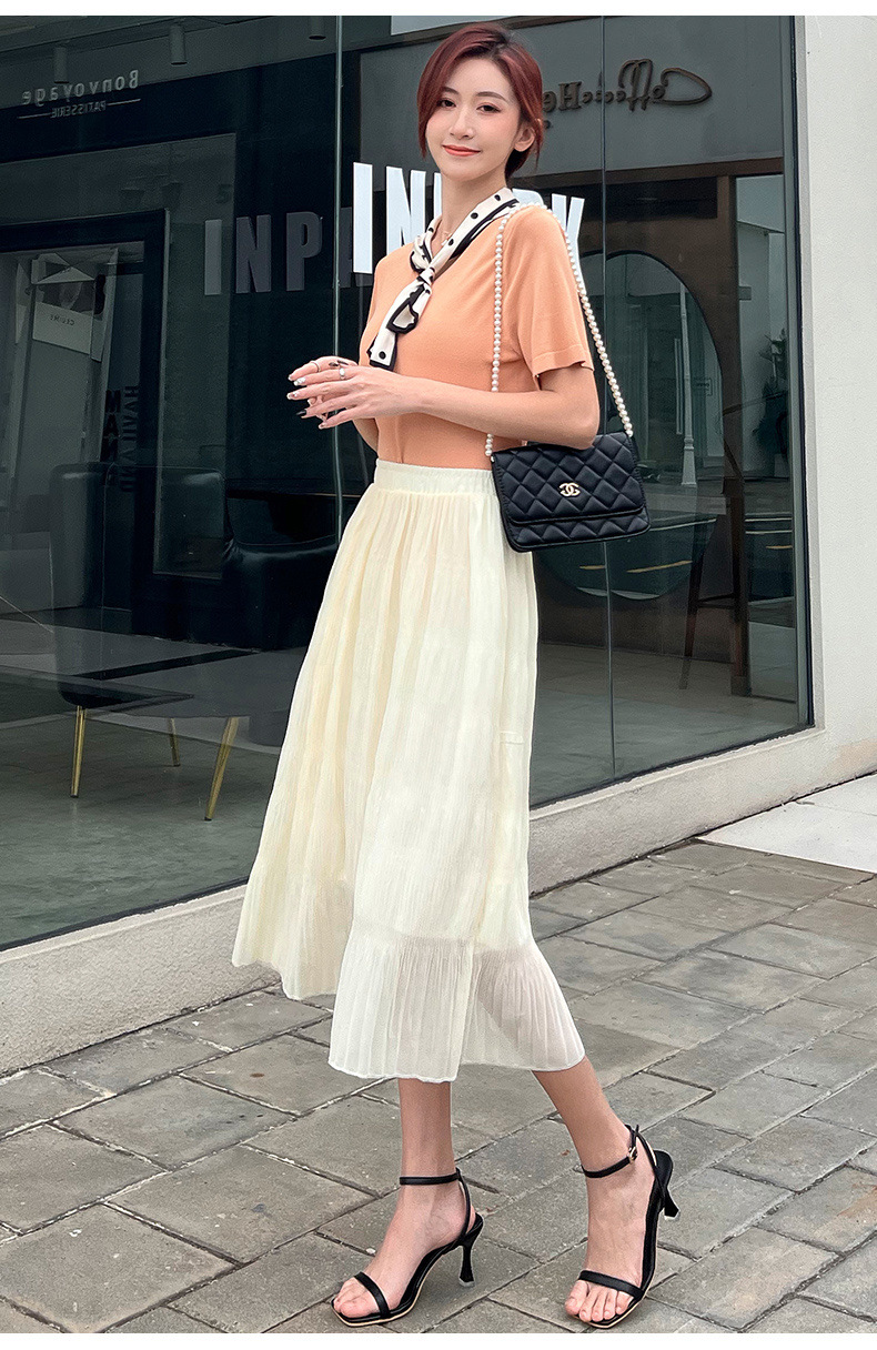 꽃 우아한 치마 스타일 쉬폰 신선한 치마 2024 여름 새로운 중간 길이의 높은 허리 슬리밍 긴 치마스토어 가기