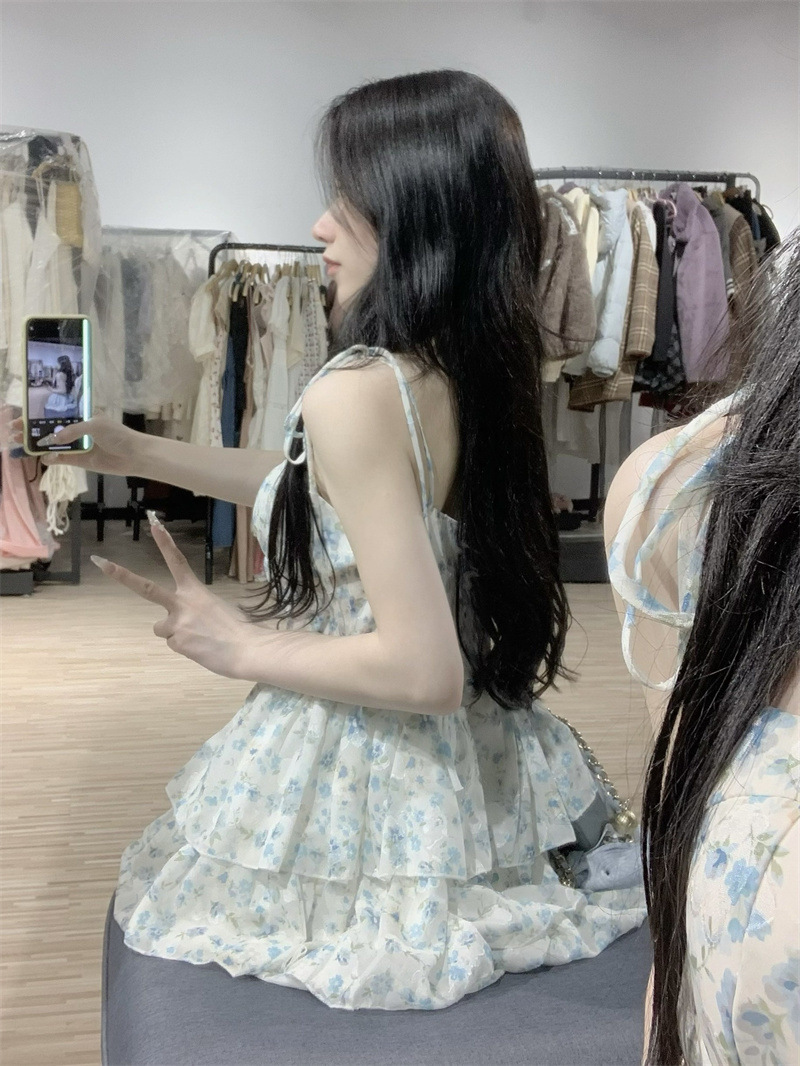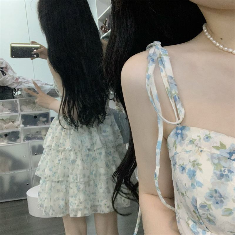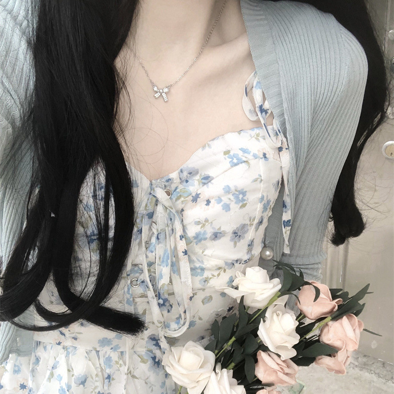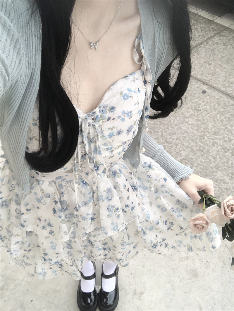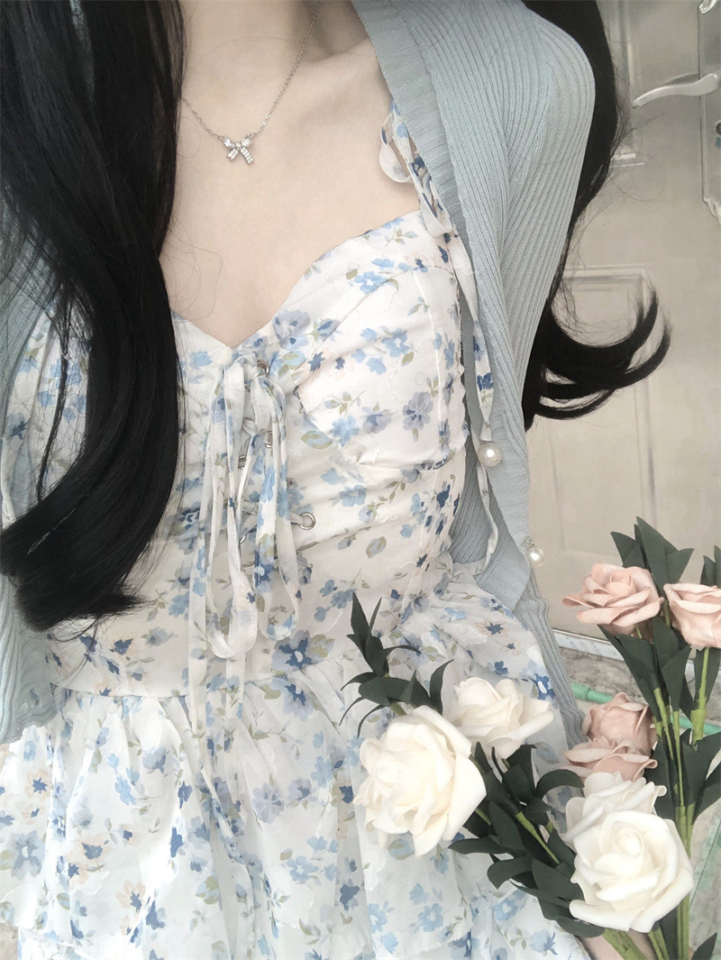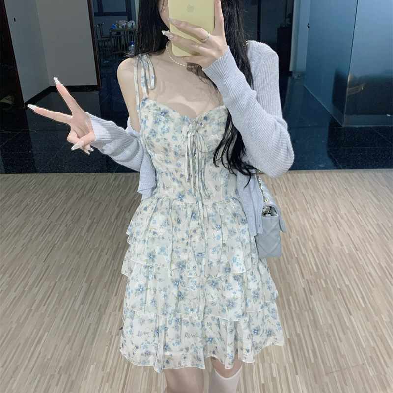 여름 한국 스타일 새로운 달콤한 신선한 스타일 꽃 슬링 원피스 여성 우아한 올 매치 카디건 얇은 코트 트렌디스토어 가기